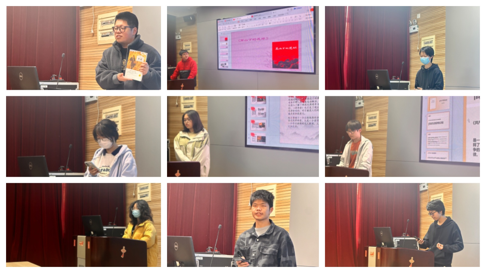 刘哲分享了《牛虻》,作者伏尼契口中难道这是青年的刊物吗?的作品成为了指引一代代革命者培养革命浪漫主义的标杆。主角在绝望与痛苦中仍旧不放弃人生目标,强权面前绝不退缩的坚定革命精神超越了原本的内涵。邱旭分享《习近平的七年知青岁月》,本书由29位采访对象口述的采访实录所汇编而成,生动再现了习近平总书记在陕北的艰苦生活和成长历程。林波分享《红旗谱》反映了从第一次国内革命战争前后到九·一八事变时期北方社会错综复杂的阶级关系,展现了20世纪二三十年代中国共产党领导中国人民进行革命斗争的伟大历程。晏金桥分享由卡尔·马克思和恩格斯合著的著名政治文献《共产党宣言》,该书提出无产阶级解放和社会主义理念,对后来社会主义运动影响深远。张仁耀分享了影片《高山下的花环》,该片根据李存葆的同名小说改编,塑造了梁三喜、赵蒙生、靳开来等一批个性鲜明的人物,反映了对越自卫反击战中战士们在血与火的洗礼中经受的考验,以及他们一心为国,以保卫国家和人民的安全为己任的高尚品质。王西分享《革命者》里中国近代革命先驱李大钊在革命的道路上砥砺前行,为革命事业不懈奋斗的故事,以及他在传播马克思主义和建党救国的过程中所经历的壮阔历史。耿锐娜分享了蒋殊创作的散文集《重回1937》,作者以山西抗战老区八路军总部所在地幸存的抗战老兵为采访对象,包括参加纪念抗战胜利70周年活动阅兵式的五位老兵。书中文字不重现当年的战争场面,重在探寻他们的心路历程。陈俣慧分享《平凡的世界》,该书以深入浅出、平实近人的文风为我们揭示了新中国社会主义建设初期的历史画卷,全景式地描写了中国现代城乡生活,以孙少平等人为代表刻画了社会各阶层普通人们的形象。彭路娜分享了电影《林海雪原》,以杨子荣的视角展开,从他接受任务,深入匪巢,到最终消灭敌人,每一个情节都紧张刺激,表现了人民解放军为解放全中国而奋斗的精神,也展现出人民解放军与人民群众的深厚感情和血肉联系。