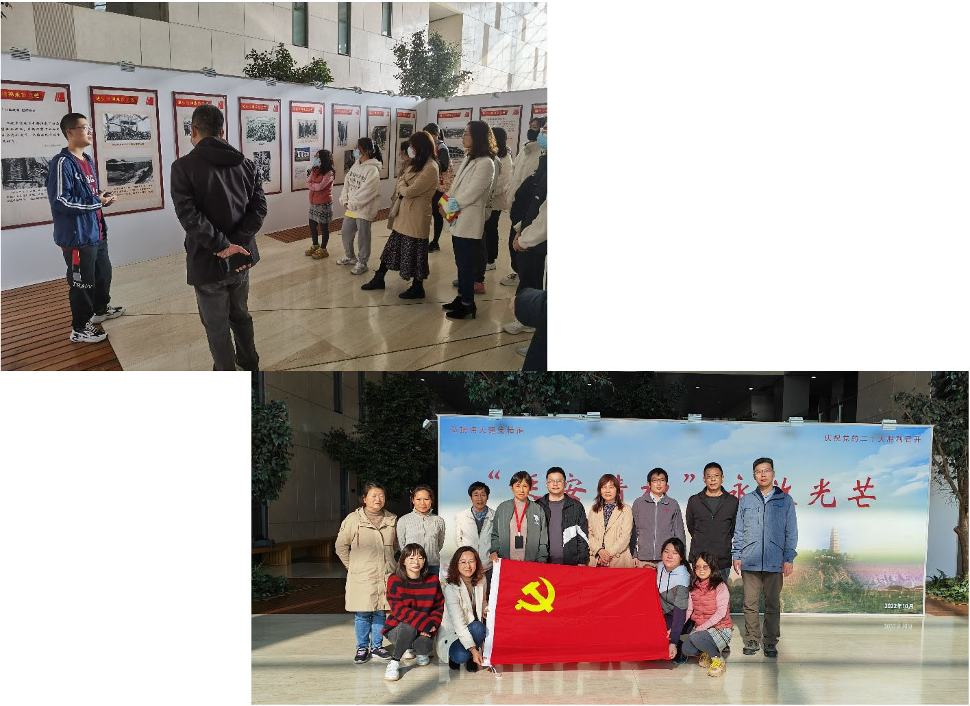 随后,支部全体党员移步至永利集团衷和楼一楼,参观了“延安精神”永放光芒主题展。在展览中,大家跟随着讲解员的声音,从延安根据地的建立、西安事变、国共合作……一点一点回顾了我党艰苦奋斗的光辉历史,大家更加深刻地感悟不忘初心、坚定不移全面从严治党的重要性。