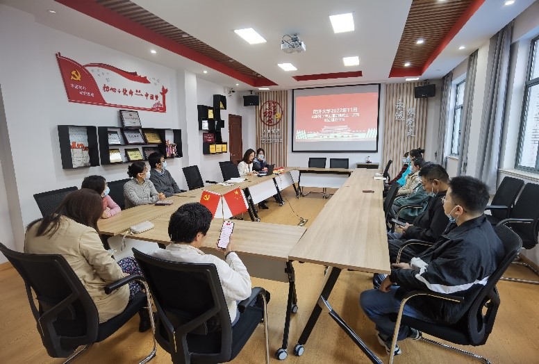 11月15日下午,教工第二党支部在化学馆239会议室同心共学党的二十大报告。活动当天,支部书记赵红颖同志为支部党员结合党的二十大精神学习体会讲授主题党课,一起回顾了党的二十大报告的核心主题,为全面建设社会主义现代化国家、全面推进中华民族伟大复兴而团结奋斗。大家一起逐条学习了报告的十五个部分。通过学习,支部成员深刻理解了新时代新征程中国共产党的使命任务、继往开来开辟马克思主义中国化时代,结合工作实际对服务科教兴国战略、推进文化自信自强、促进世界和平与发展、推动构建人类命运共同体等内容进行了深入思考。