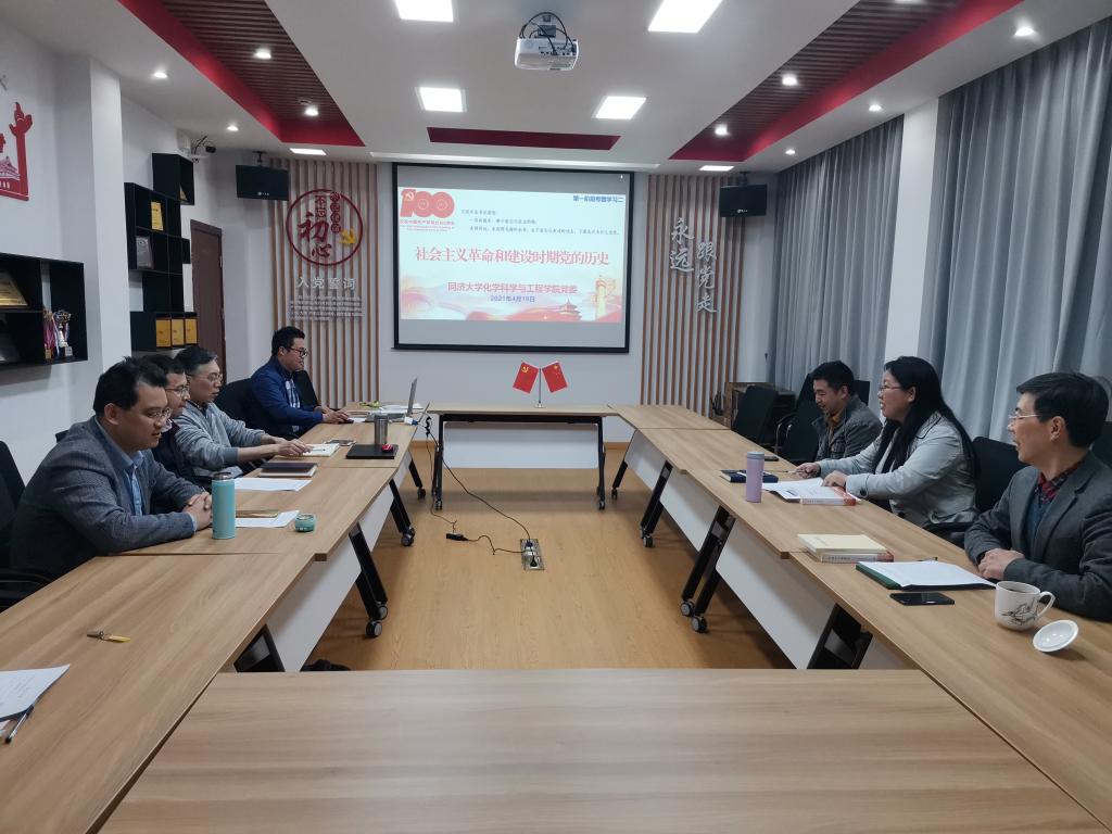 4月19日上午,学院党委理论学习中心组成员在化学馆239会议室以读书班形式开展了第二次党史学习教育专题学习会,集体研讨社会主义革命和建设时期党的历史。专题学习会由学院党委书记杨晓杰主持,理学部副主任赵国华、学院党委会成员参加,非党员领导班子成员列席学习会,学校党史学习教育第四巡回指导组组员、保卫部副部长刘胜乾出席指导。
