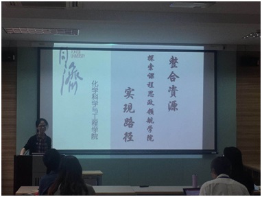 在研讨会上,课程思政骨干成员相波老师以《整合资源,探索课程思政领航学院实现路径》为题作了主题报告。相老师首先介绍课程思政示范专业到领航学院的申报过程,学院和有关课程老师在教学中如何挖掘,推进课程思政开展的情况。从立足课程挖掘思政育人元素,到整合课程的过程中探索培养方案中课程的思政育人大策略,再到整合资源全面推进课程思政领航学院的建设,在学院党委整合资源支持下,学院教学负责人统筹协调,全体任课老师教学协同、全员全方位全过程纵横协作,逐渐实现了围绕目标、按照教育规律实施课程思政教育,进而整合资源,促进第一二课堂联动,形成课程思政“三全育人”工作机制,提升课程思政育人效果。相老师进一步从教学协同和整合资源两个方面详细分解有关工作的推进情况,展望未来学院能够在领航学院建设过程中形成一套完整的体系,不断传承,真正提升育人效果。
