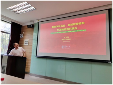 柳华杰教授从科研工作中融入育人元素的角度分享了自己对课程思政和三全育人的认识,并结合几个实例分析了科研育人与课程思政育人的共通性,拓展课程思政育人的外延。党委副书记母朝静介绍了“十大育人”体系的构建、学院“三个课堂”协同育人平台的搭建和“三全育人”工作机制的不断完善等工作情况。