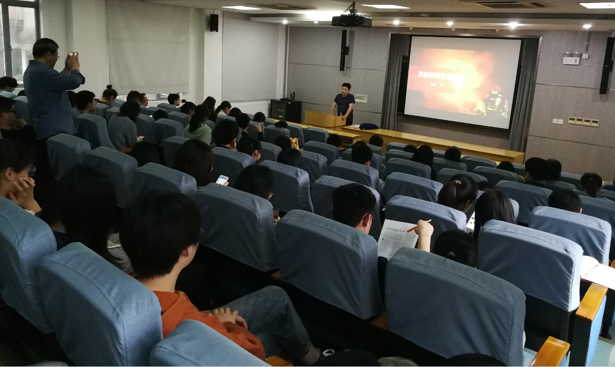 学院举办消防安全知识讲座与逃生演习活动 4月9日下午,学院安全教育讲座举行,邀请保卫处消防科韩飞老师向师生做消防知识安全培训。我院2018级博士、硕士研究生、2019级春季入学博士生及近年来新进教师近百参加了讲座,副院长刘明贤参加并主持会议。