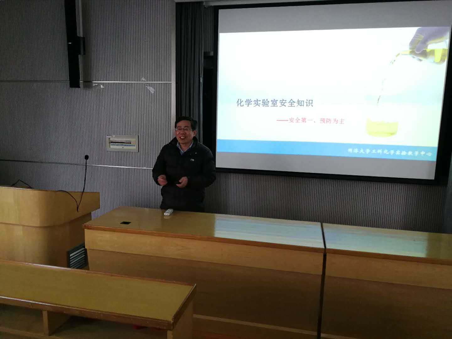 学院党委负责人杨晓杰出席培训会并做安全工作动员。化学实验示范中心主任张荣华老师作实验室安全讲座,许新华老师就实验室安全设施操作进行了现场指导。参加学院统一讲座和演练的师生在随后的组会中向其他师生宣讲实验室安全及事故应对措施,确保进入实验室的师生该项教育全覆盖。
