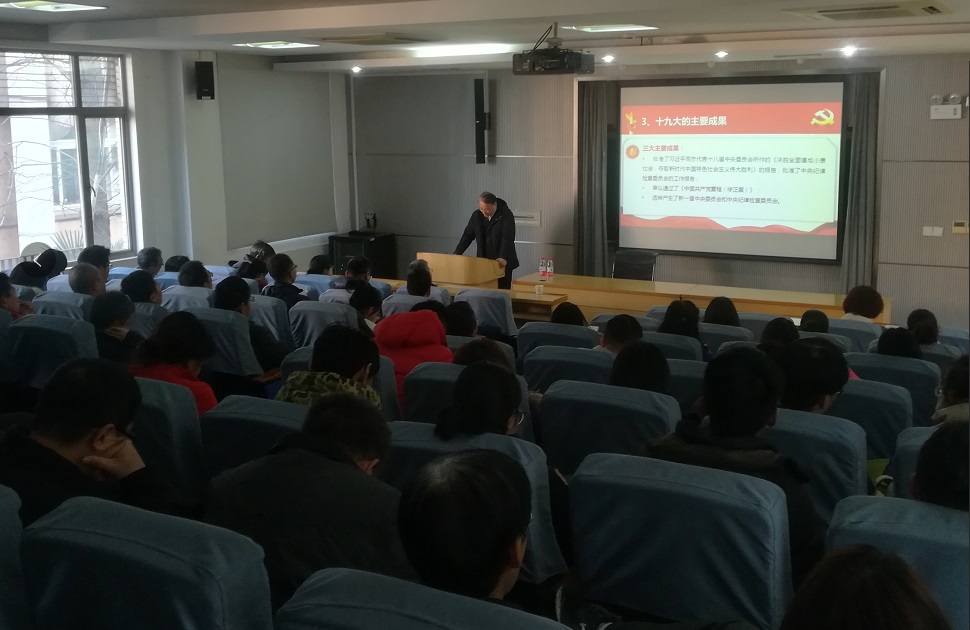 12月12日下午,校党委副书记徐建平应邀来到化学馆241报告厅为我院全体教职工和部分学生党员上主题党课,宣讲十九大精神。此次党课也是本学期全院教职工集中思想政治学习教育活动之一,学院党政班子成员参加了党课学习。