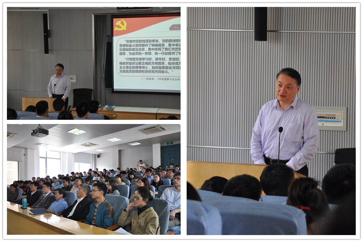 徐书记以“学习党章、尊崇党章”为题,结合自己的学习领悟,从党章的重要地位、入党誓词的演变、党章的历史沿革、应该重点把握的几个问题以及五个牢记、严格遵守党章等五个方面深入浅出地为大家讲解了党章。首先,围绕党章的重要地位,徐书记重点阐述了习近平总书记对学习党章所提出的四点要求和学习党章要做到的五个结合,他指出学习党章要加强理论修养、政治修养、道德修养、纪律修养和作风修养。接着,他分别介绍了土地革命时期、抗日战争时期、解放战争时期、新中国成立前后和党的十二大以来五个时期的入党誓词,就入党誓词的演变及其深刻内涵进行了深入剖析。徐书记还在党课现场为大家背诵了党的十二大确定的92字入党誓词。第三部分,徐书记为大家解读了从1921年的一大党纲到2012年十八大党章的历史沿革,并重点分析了党章每一次修改的历史背景和内容特点。然后,徐书记特别指出学习党章应重点把握的十个问题,分别是党的性质、党的指导思想、党的纲领、党的领导核心地位、党的宗旨、共产党员的标准、党的组织制度、党的组织体系、党的干部路线和党的纪律。最后,徐书记要求所有党员做到五个牢记,严格遵守党章:牢记入党誓词,始终践行诺言;牢记政治信仰,始终对党忠诚;牢记根本宗旨,始终为民服务;牢记党的纪律,始终坚守规矩;牢记政治本色,始终积极工作。 通过聆听徐书记对党章的解读,我系师生党员纷纷表示受益匪浅,将进一步认真学习党章内容,深刻领会党章内涵,切实牢记党员标准,贯彻落实“两学一做”学习教育工作。 同济校园新闻网链接:校领导参加基层党支部“两学一做”学习教育 |