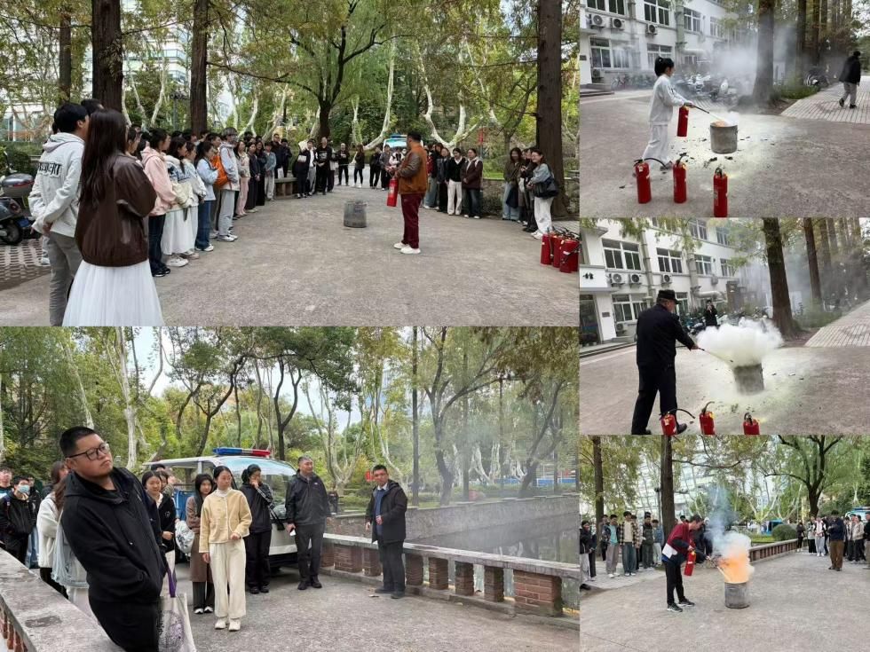 保卫处安全生产办公室副主任贾晓航老师应邀为师生做消防安全培训讲座。贾晓航老师从火灾案例、火灾事故原因、消防安全条例等方面讲解了掌握消防安全知识的重要性,结合火灾的特点重点介绍了灭火器、灭火毯等消防器材的使用方法。讲座结束后,在化学馆举行了紧急逃生演练。随后,全体人员前往工程试验馆门前参与消防灭火实操演练。现场指导老师细致拆解灭火器 “提、拔、握、压” 的使用步骤,亲自示范操作要领。师生们热情高涨、踊跃参与,在专业指导下依次拿起灭火器,对准火源精准喷射,切实体验灭火全过程,将理论知识转化为实操能力。