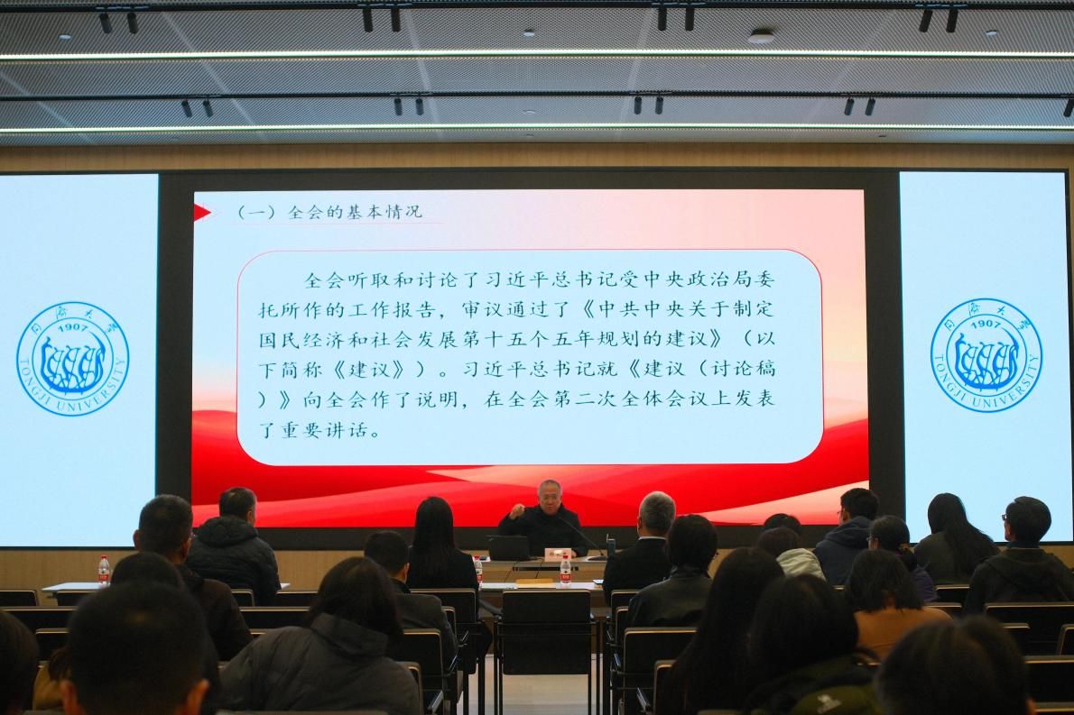 党的二十届四中全会上海市委讲师团成员、复旦大学郑长忠教授作专题辅导报告。郑教授以其深厚的理论功底和独到的学术见解,系统解读了全会召开的时代背景、重大意义及《中共中央关于制定国民经济和社会发展第十五个五年规划的建议》的起草过程和核心内容。他重点阐述了“十四五”时期取得的重大成就、“十五五”时期在社会主义现代化进程中的重要地位、国内外形势的基本判断,以及“十五五”时期经济社会发展的指导思想、重大原则、主要目标和战略任务,并围绕建设现代化产业体系、加快高水平科技自立自强、推动文化繁荣、保障改善民生等方面进行了深入阐释。郑教授的报告热情饱满、深入浅出。整场报告逻辑清晰、内容丰富、论述精辟,既有理论高度、又有实践深度,对与会教师深刻理解、准确把握和贯彻落实党的二十届四中全会精神具有重要的指导作用。