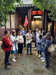 活动首站抵达莲花岛,这座形似莲花的小岛兼具自然野趣与文化底蕴。老师们率先走进三元府第,在清代 “连中三元” 状元钱棨的祖宅中,古朴院落与祈福牌相映成趣,老师们聆听状元求学传奇,沉浸式感受江南文脉的厚重底蕴。随后探访忆园民俗馆,通过泥塑群像和鱼类模型展览等沉浸式体验,感受渔民劳作场景与水乡生活百态。