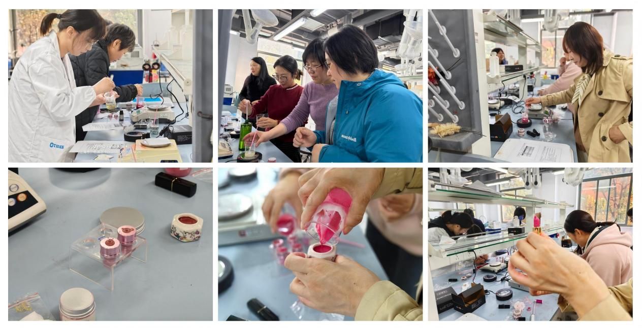 活动开始,老师们便对亲手制作润唇膏表现出浓厚兴趣。刘亚菲老师提前精心准备了详细的制作步骤说明,还根据不同需求备齐了丰富原料:白池花籽油、玫瑰果油等多种植物油保障滋润度,豆沙色、玫红色等色粉适配多元审美,香橙、茉莉、佛手柑等香精则赋予作品独特韵味。其中清新雅致的佛手柑香精格外受欢迎,活动中被老师们尽数选用。