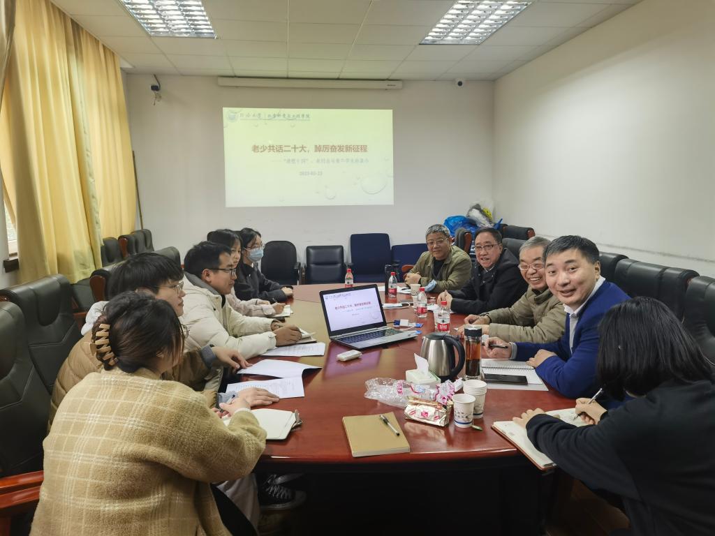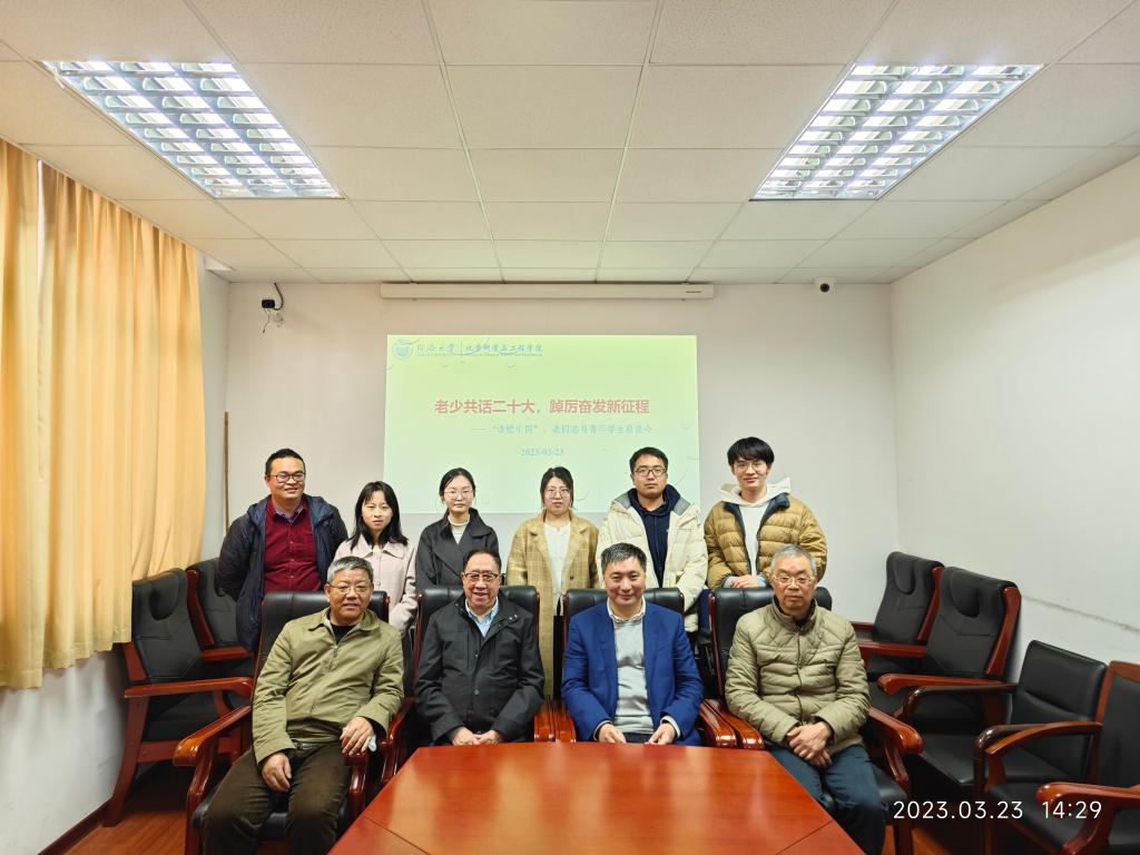 3月23日中午, “读懂中国”——yl9193永利集团关工委老同志与青年学生座谈会在工程试验馆举行。学院关工委分会小组代表常德春、孙云平、王晓平以“老少共话二十大,踔厉奋发新征程”为主题,应邀与在校学生代表座谈交流。学院党委书记、关工委分会主任曹同成,党委副书记、关工委分会副主任母朝静,分会秘书祝全敬出席,学院研究生第五党支部支委会成员和骨干学生党员代表参加座谈会,同时推动退休党支部与研究生第五党支部的共建。