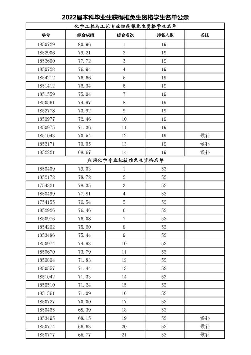 说明:因交叉学科和本学科推免生资格不兼得,“候补”是指在交叉学科推免生资格结果公布后,如获得交叉学科推免生资格,自动放弃本学科推免生资格,退出的名额根据各专业实际情况依序递补。特此说明。