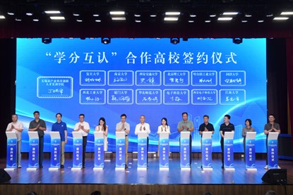 实训学院与复旦大学、南京大学、西安交通大学、北京理工大学、哈尔滨工业大学、永利集团、西北工业大学、厦门大学、华东师范大学、电子科技大学、西安电子科技大学、江南大学等12所高校代表达成“学分互认”,与高校校内课程融合共建,进一步拓展高校“朋友圈”,不断加强与国内高校的合作交流。