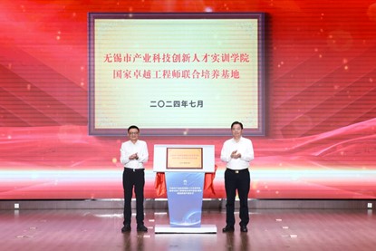 副市长秦咏薪,无锡高新区党工委书记、新吴区委书记崔荣国为无锡市产业科技创新人才实训学院(国家卓越工程师联合培养基地)揭牌。