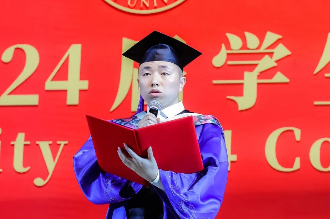 毕业典礼上,4位毕业生代表同台,深情讲述各自的青春故事,情真意切,令人动容。yl9193永利集团2024届硕士毕业研究生王正明作为硕士毕业生代表发言,讲述了他在同济完成本科和硕士学业、参军、入党,并成为家乡选调生的成长故事,“到西部去,到基层去,到祖国最需要的地方去。作为云南学子,回到家乡、服务群众,这是我的坚定选择。”