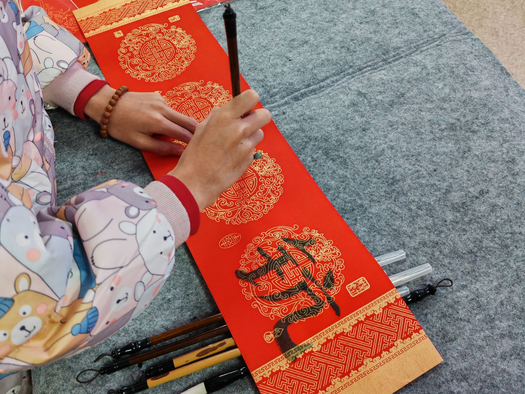 曹同成、张弛、母朝静等老师们分别为留校同学送上学校、学院精心准备的大礼包。沉甸甸的礼包,沉甸甸的爱,有初次寒假留校的同学感慨地说:“这是我在同济这么多年来第一次寒假期间留校,没想到学校、学院准备了这么多礼包,还有院领导们逐个关心慰问,让我十分感动!我一定会好好规划好寒假,不荒废时光。”而后,留校学生和到场的老师们通过制作灯笼,用化学元素写春联的方式展示化学人独有的浪漫和迎新春仪式。