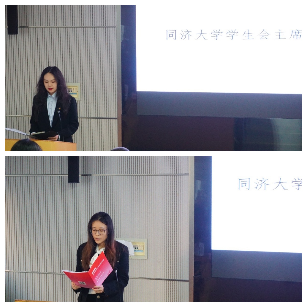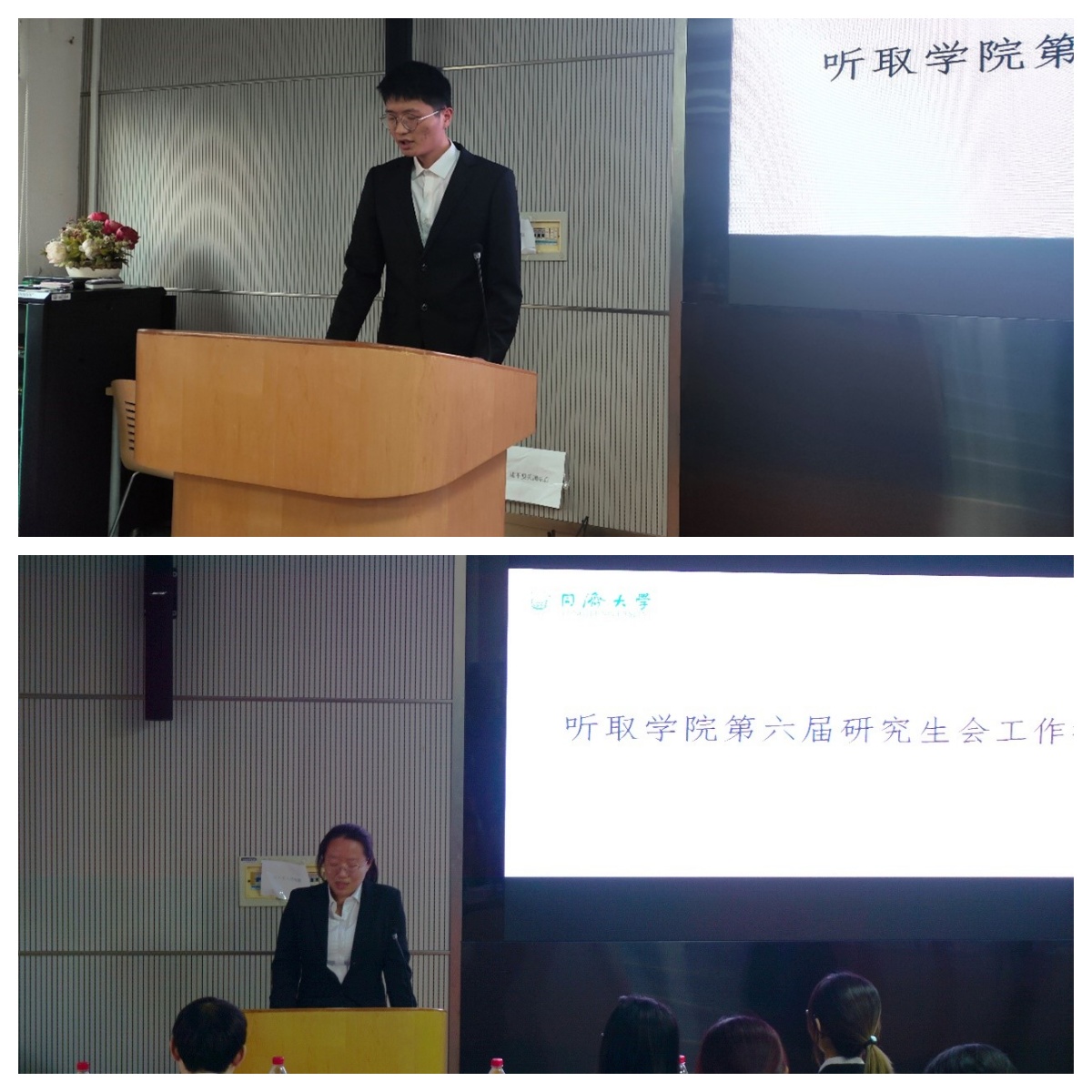 学院第六届学生会主席团成员刘泳龙做了工作报告,全面回顾了过去一年学生会作为联系师生的重要纽带,积极配合党团组织,结合学科特色开展多次活动,希望新一届学生会能够保持热爱,在学院党委的领导、学院团委和校学生会指导下,以全心全意为同学服务的宗旨,取得更大的成就。第六届研究生会主席团成员秦婷婷做了工作报告,全面回顾了过去一年研究生会在学院党委的领导下,围绕中心,以同学为本,踔厉奋进取得的各项成绩。同时展望未来,她寄希望于研究生会能进一步加强思想引领,积极践行新时代同济文化,切实提高同学满意度。让研究生会担负起新时代学生组织的时代使命。