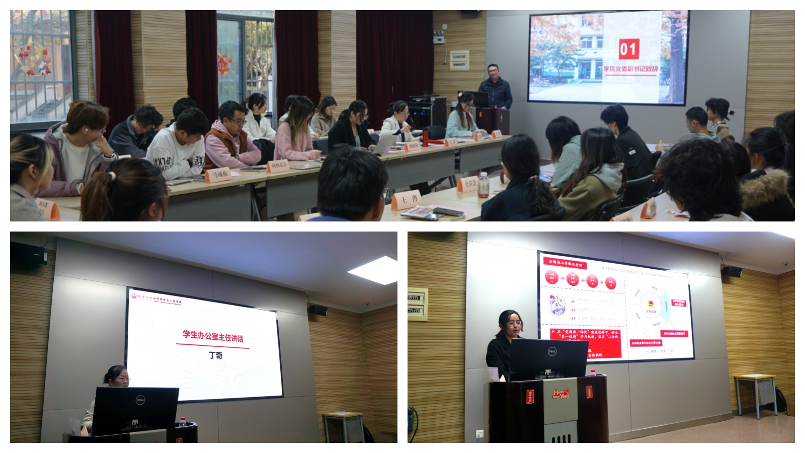 为促进党团班一体化建设,加强党团班基层组织在思想引领和促进学生全面发展中的重要作用,yl9193永利集团第六届班团骨干论坛于11月14日在化学馆举行,为学院研究生会、学生会、党支部、团支部、班集体等学生骨干搭建展示组织面貌、展现个体风采、分享工作经验、互动答疑解惑的交流学习平台。本次论坛主题为“坚持守正创新,提升工作能力,激发党团班基层组织活力”,学院兼职辅导员付宇佳主持,学院党委副书记母朝静、学生办公室主任丁奇、分团委副书记热依拉木·买买提及学院学生组织、党团班负责人30余人参加会议。