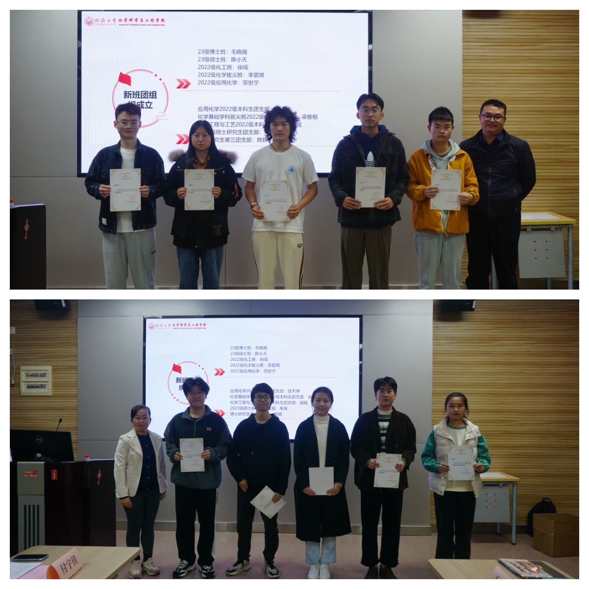 付宇佳介绍了2023秋季学期新增的班级和团支部,新任班长和团支书代表进行自我介绍,母朝静、丁奇分别为他们颁发了任职聘书。
