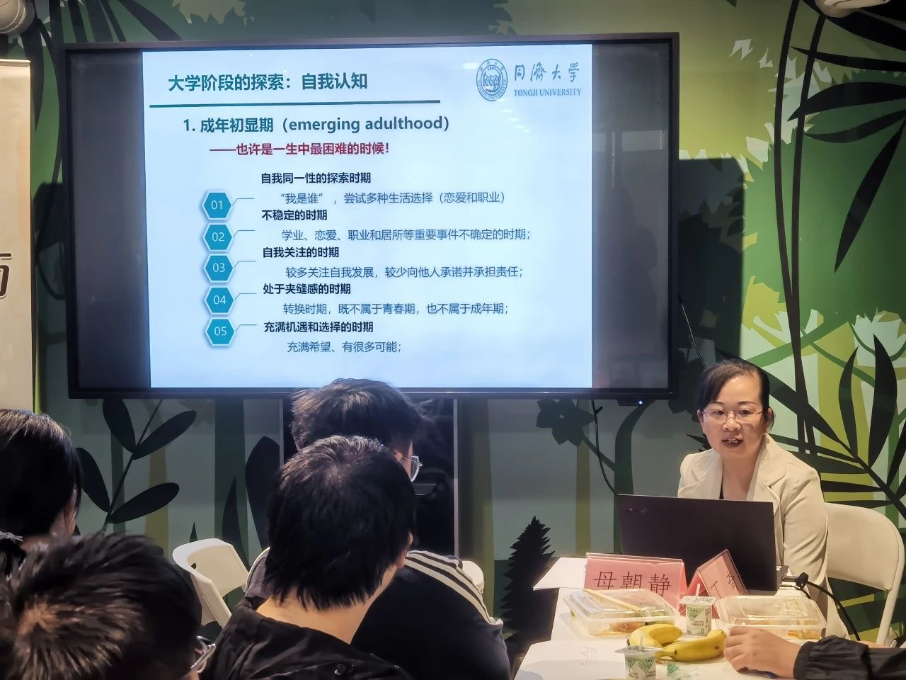 母朝静欢迎加此次活动的师生,介绍了参加本次活动的各位老师,并介绍了开展此次活动的背景,然后请丁奇老师结合同学们提出的大学生活中面临的诸多迷惘和焦虑,做了一场心理讲堂。