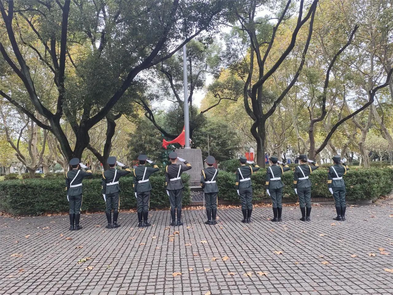 升旗仪式结束后,在场的师生们驻足仰望着飘扬的五星红旗,参加活动的同学感受颇深。