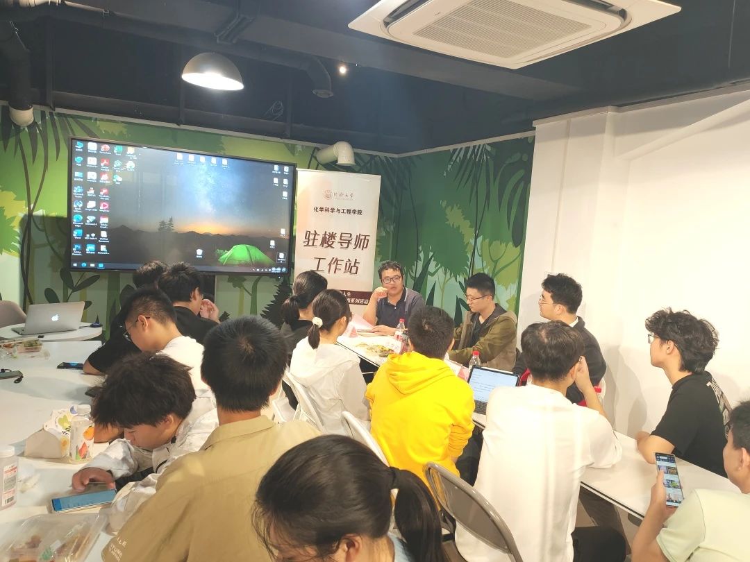 活动之初,母朝静热情地欢迎师生参加这次的活动,并首先邀请两位班主任分享个人求学经历、目前研究方向及对化学专业学科的未来发展方向的认识等,为同学们适应大学生活、规划个人发展方向提供指导和帮助。许茂桐从自己对天文学的兴趣谈起,从天文学学习中发现化学作为中心学科的战略重要性,转而选择化学专业,再到目前聚焦廉价金属催化合成工作为解决关键核心技术娓娓道来,他指出同学们要善于发现应用学校的各种平台和机会进行多元发展、多方面学习,为长远发展做好充分准备。张祎男谈及自己先是学习工程力学,后转入材料科学与工程专业学习,现在又来到化学学院开展科研工作,相关专业的知识背景以自身的跨学科交叉经历都对当前的研究大有裨益,为同学们讲述了交叉发展对于学习的重要性。母朝静告诉同学们,当下的教育方针就是尊重个人的发展意愿,在兴趣爱好和能力特长的领域里进行拓展,丰富自己的知识储备和综合技能,沉下心来用心学习,投入时间成本,避免浑浑噩噩的过日子,找对自己的方向和目标,实现自我的成长。