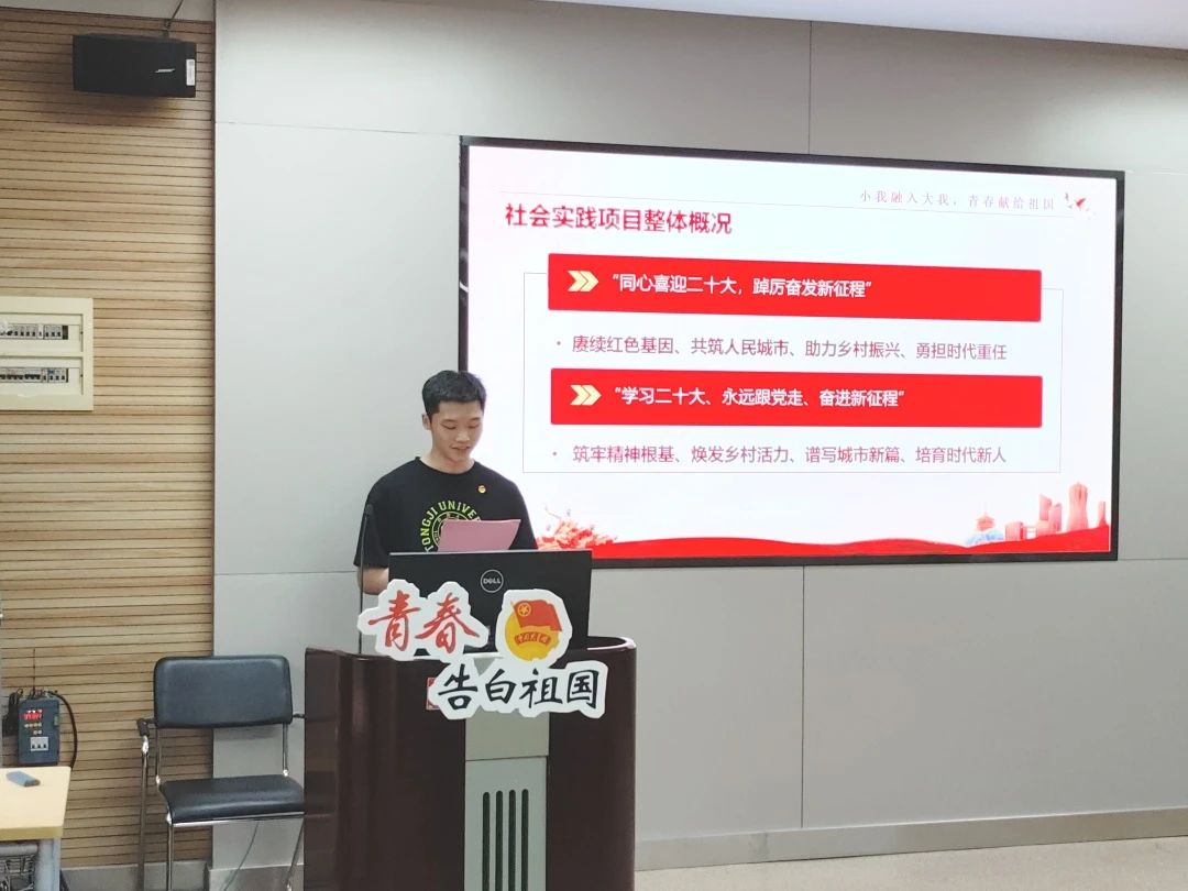 母朝静致辞表示,现如今“以实践淬炼,构建大实践育人体系”是工作中的重要一环,对于培养学生肩负使命、追求卓越有着重要的意义。2023年两个学院共有7支社会实践团队、参与学生28人次、指导老师7人次,覆盖了寒暑期各个专题。他们自觉担当重任,深入基层一线,深化调查研究,形成了一系列主题鲜明、形式多样的丰硕成果。希望全体学子能以本次报告会为新起点,不断巩固、扩大社会实践成果;希望未来更多同学能返家乡、到基层、进社区,将课堂学习和社会实践紧密结合,努力做出具有专业特色的“品牌项目”,用青春力量奉献社会,以奋斗青春向祖国告白。