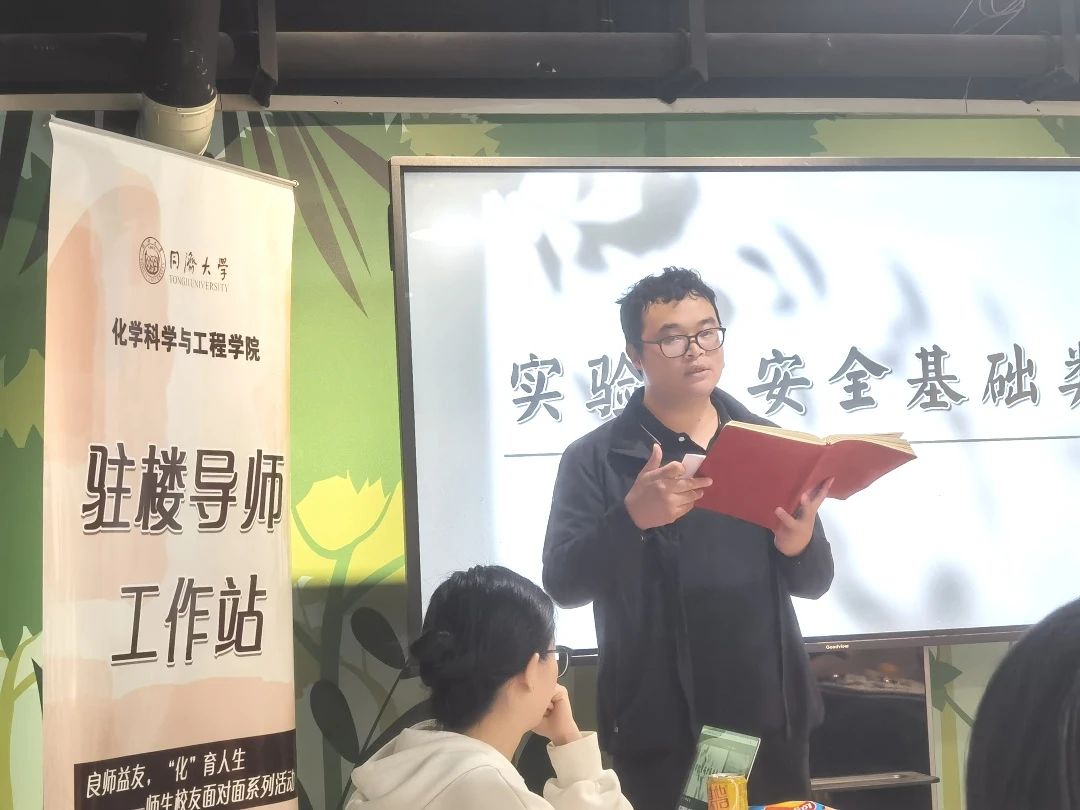 活动伊始,母老师对各位同学的到来表示欢迎,并做了三方面的介绍。首先,他回顾了“驻楼导师工作站”从2020年秋季学期至今的建设情况,从“课题组思政进社区”到“专业志趣引领”,再到现如今的“学业帮扶在社区”,导师讲解范围十分广泛、也覆盖了多个学院的同学。其次,他讲到学院近几年毕业去向落实率情况,提醒同学们在校期间抓住学业重点,提升自己的能力;引导同学们树立正确的就业观,早日考虑好自己未来的去向并为之做出努力。最后,他分析并强调了实验基础技能在化学学习中的重要性,揭示到有时候他山之石,也可攻玉,遇到问题除了救助于己之外还可以求助于朋辈的力量。