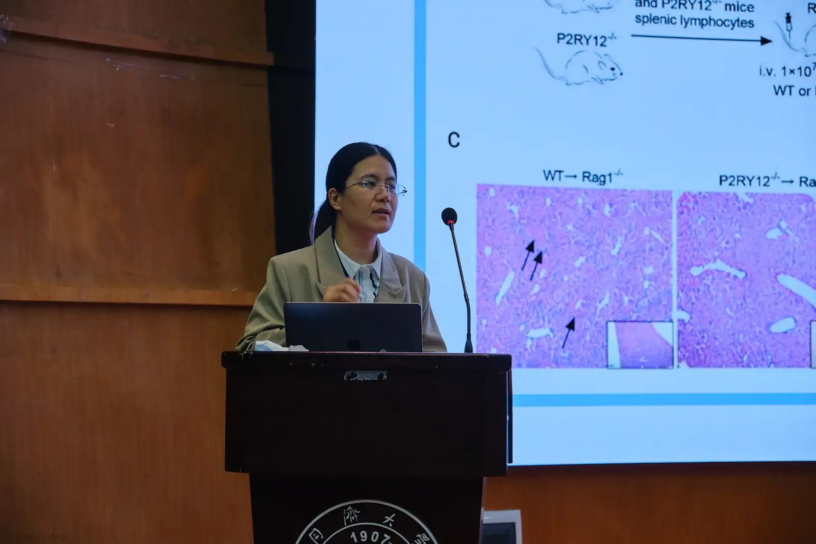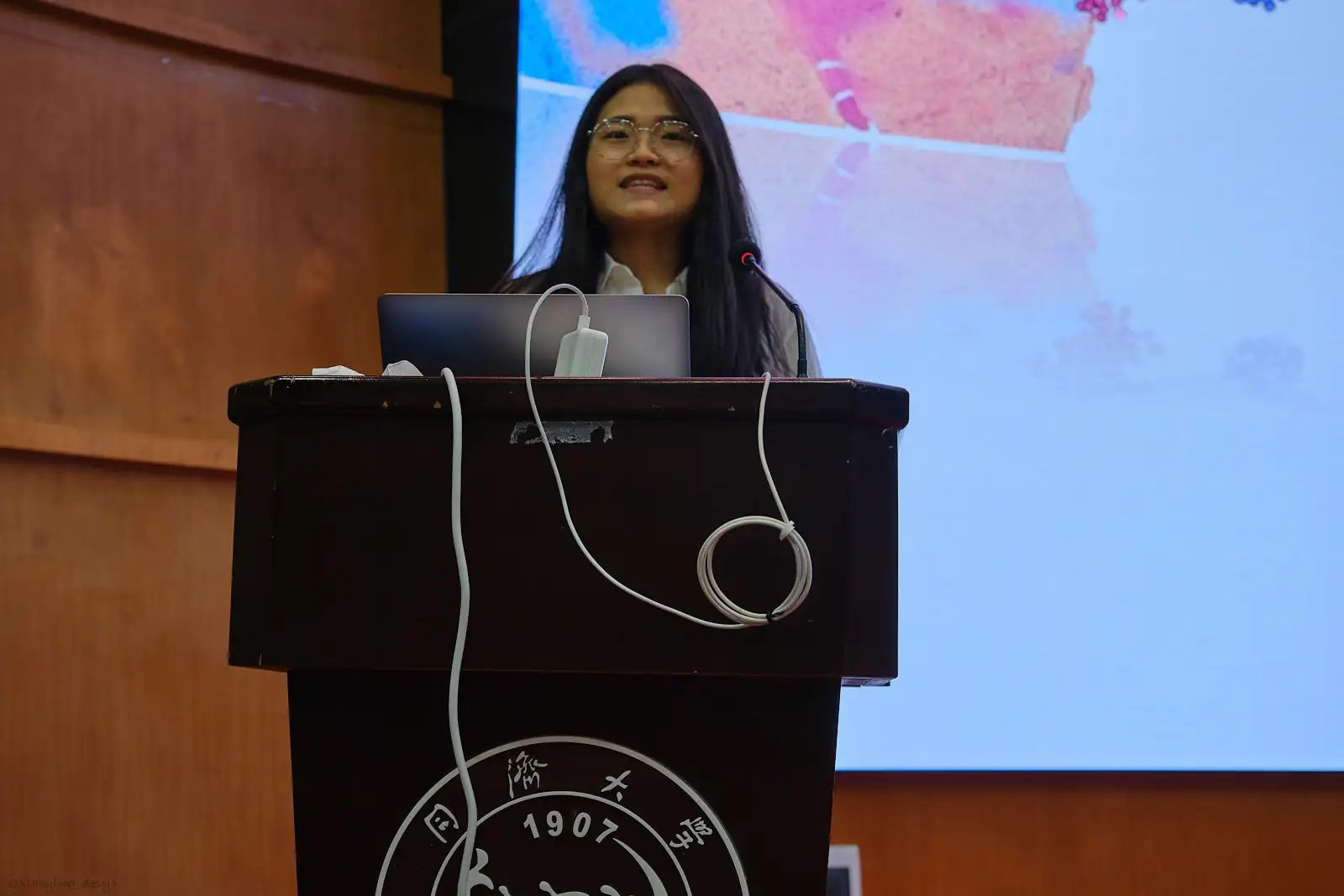 第一位分享的嘉宾是来自生命科学与技术学院的2018级博士研究生庄伟。她从免疫及自身免疫疾病入手介绍了自己的研究方向:自身免疫疾病中免疫细胞的作用机制研究,详细的介绍了自己科研经历,分享了自己的科研心得。最后为大家赠言:“拨开云雾见天日,守得云开见月明。”