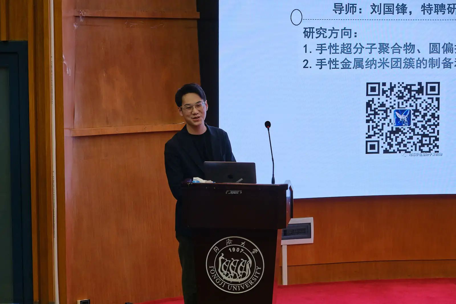 第二位分享的嘉宾是来自yl9193永利集团2021级硕士研究生姚龙飞。姚龙飞的分享幽默诙谐,不仅为大家介绍了关于手性超分子组装及圆偏振发光材料的内容,更是将科研与生活联系起来,通过他自己的研究生生活的感悟,与场的各位同学探讨了研究生生活可以带给我们什么等一系列话题。并在最后为大家赠言“沉潜而后跃动”;“敢做十年冷板凳,出水才看两腿泥”;“飞云之下有百舸争流,塔台之上有红日初升”。