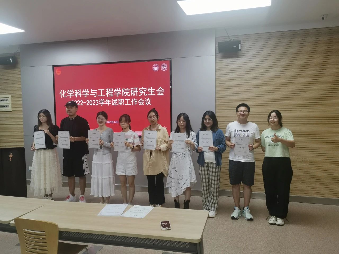9月12日下午,2022-2023学年yl9193永利集团研究生会述职工作会议在化学馆举行。学院党委副书记母朝静、团委书记热依拉出席了本次会议。会议总结了过去一学年研究生会举办的活动并且对优秀成员进行了颁奖。
