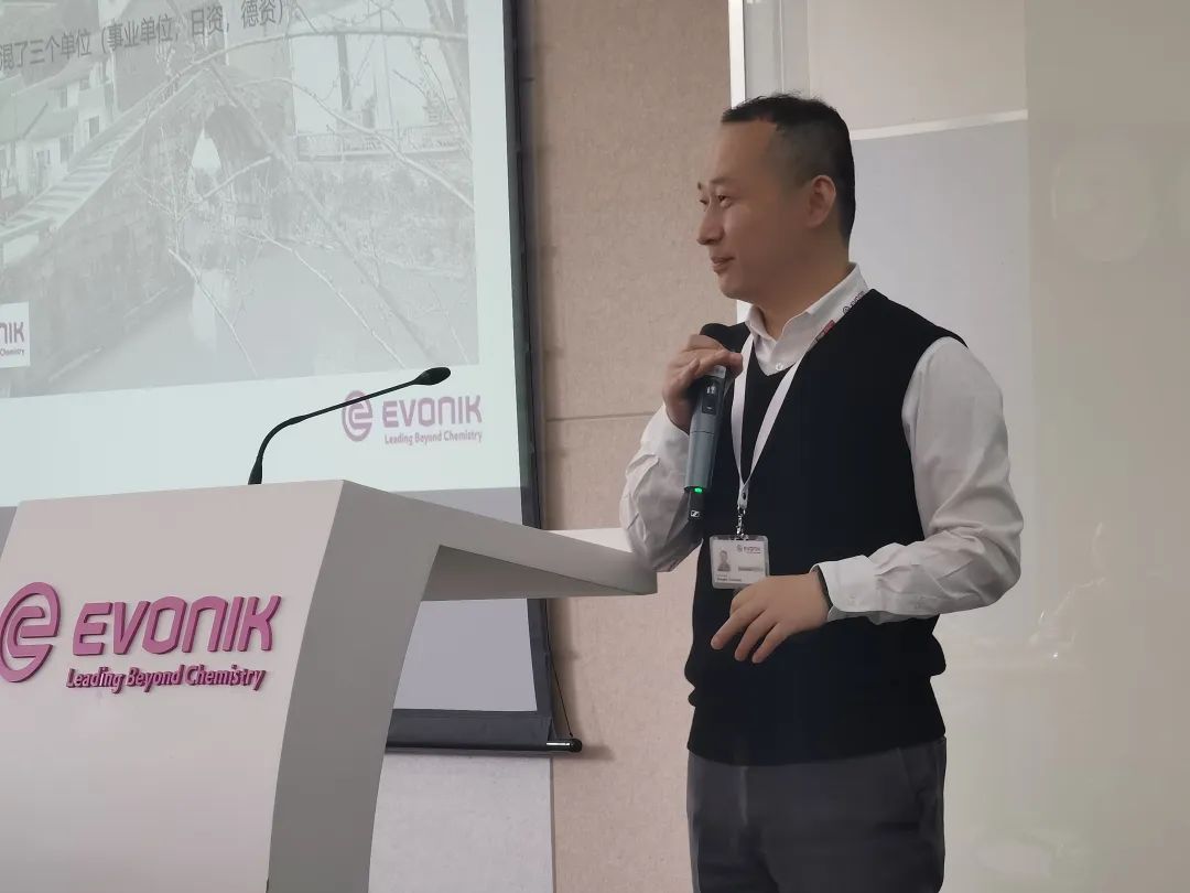 赢创(上海)人力资源北亚区副总裁程大年致欢迎词,对企业情况进行介绍,语言幽默生动。赢创作为全球领先的特种化工企业,获得盈利性增长、保持企业价值的持续增加是其核心战略。作为“杰出雇主”,赢创关注雇员的长期发展,有着成熟的轮岗制度,轻松弹性的工作时间,立下了“发现机会 共享成长”的承诺。