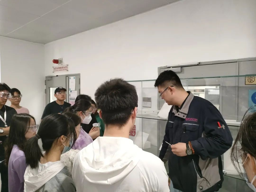 接下来,同学们分组对企业的三个实验室进行了参观。实验室台面整洁,各种试剂仪器摆放整齐。每个实验室都有工作人员详细介绍仪器用途、产品制作的简要流程,并对同学们提出的问题作出耐心解答。