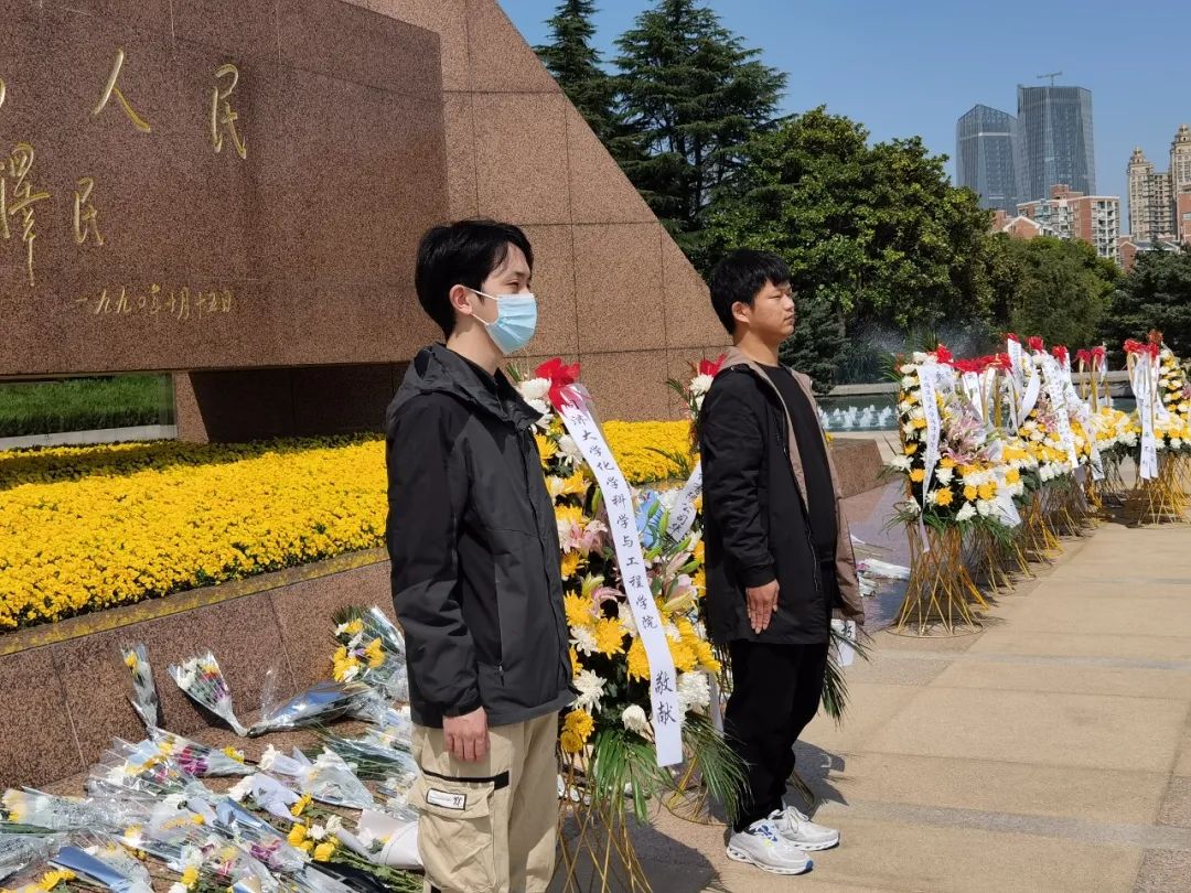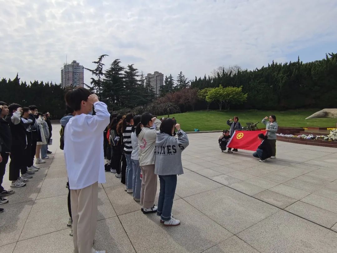 师生们首先在龙华烈士陵园正门处合影,而后集体前往纪念碑广场,师生们在碑前伫立,集体庄严肃穆默哀一分钟后,学生代表林伟宁、马威振向烈士敬献花篮,全体同学鞠躬致敬,一位位英烈仿佛穿越时空版浮现,诉说着“丹心碧血为人民”的故事。