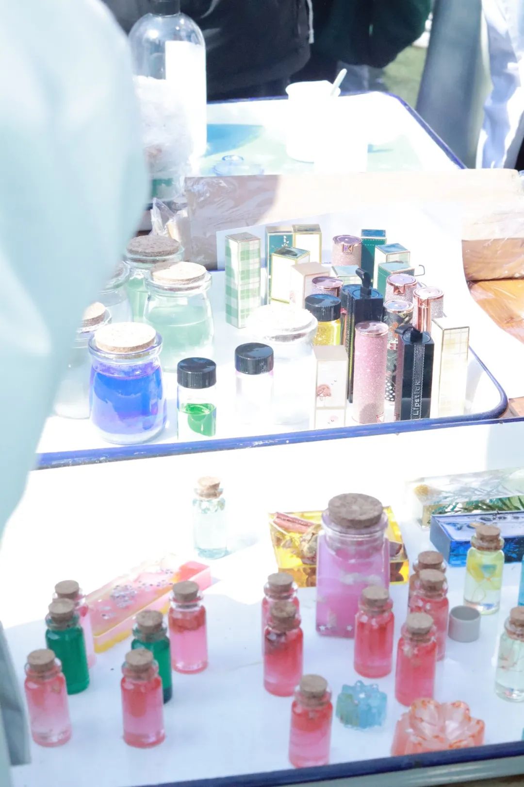 沐浴在三月的暖阳里,同学们感受着镁光灯下陈列口红的前世今生;跟随天气瓶晶体的溶析,感受自然的吟咏叹息之音;制作环氧树脂瓶,让美丽的事物永流传。