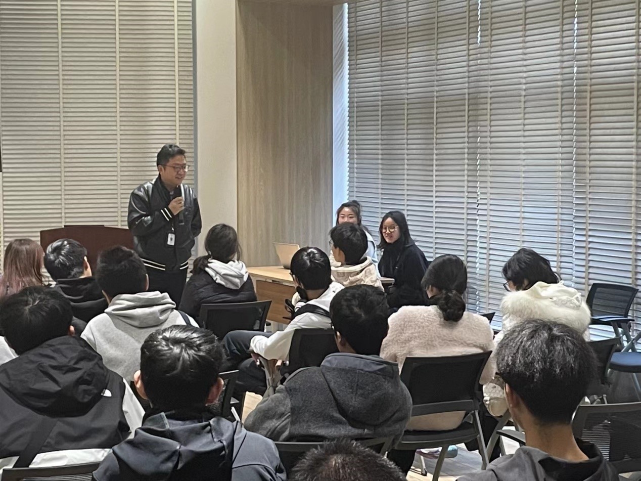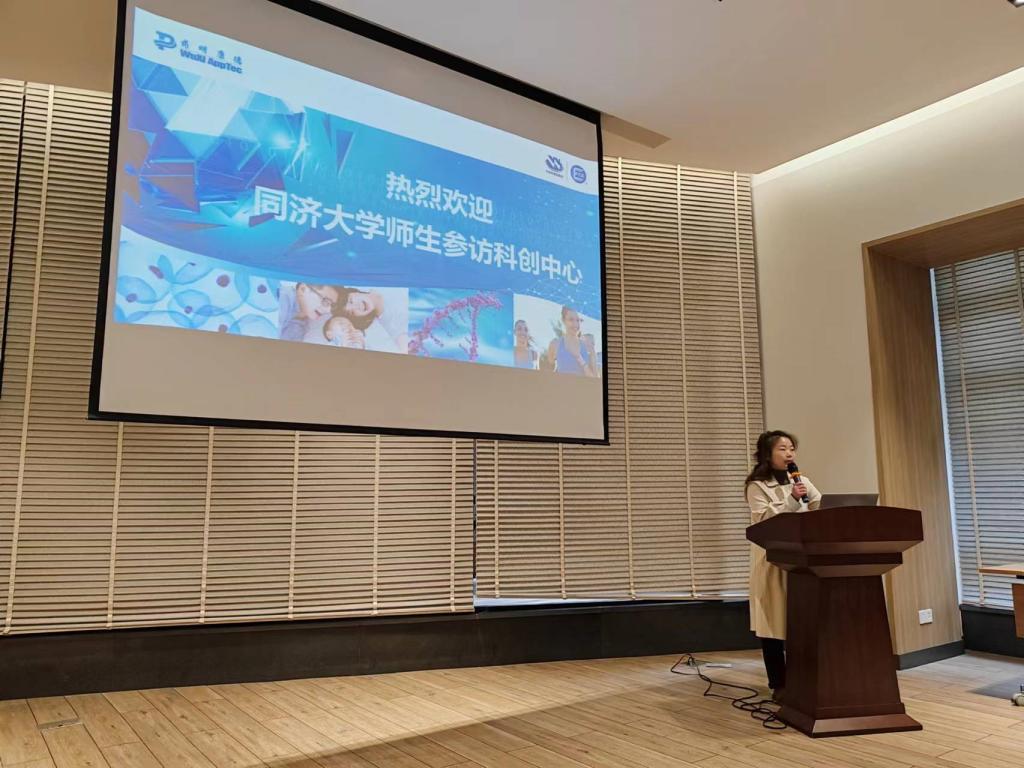 随后,同学们来到一楼会议室,公司安排了互动交流活动。众创空间运营部总监周中秋女士通过一段企业文化视频全面介绍了药明康德众创空间的情况。药明生物HR主任闫博韬博士对药明生物的企业愿景、事业发展和工作环境待遇等详细介绍,并与现场不同专业的同学对药明的不同岗位需求和工作内容的问题进行交流。序祯达生物市场部负责人于丹博士对序祯达生物的工作情况进行了介绍,针对之前参观的仪器和专业对口等问题与同学进行互动交流。
