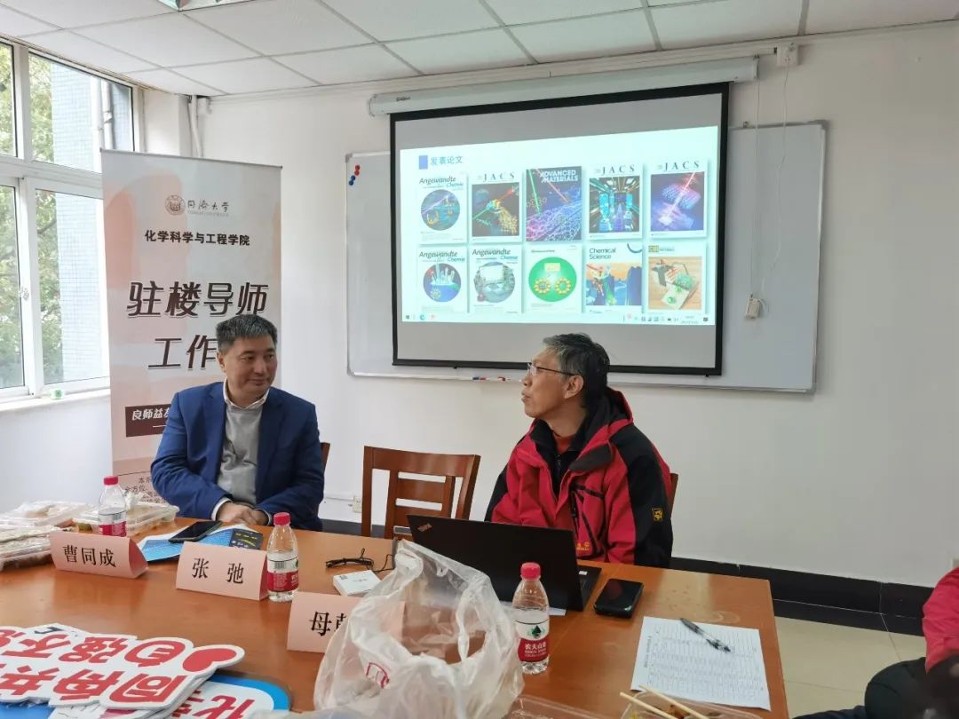他向同学们依次介绍了“光响应功能材料团队”的成员,以及团队目前研究的主要方向:无机功能晶态材料、电(化学)改性半导体光学性能、有机共轭功能分子。他结合学院国际科研合作平台的建立与运行情况,谈到学习平台的重要性,鼓励同学们努力学习,尽早确定专业志趣方向,多多了解有关课题组、科研平台等情况,牢记自己作为同济学子的使命,历练综合能力,不断奋进。
