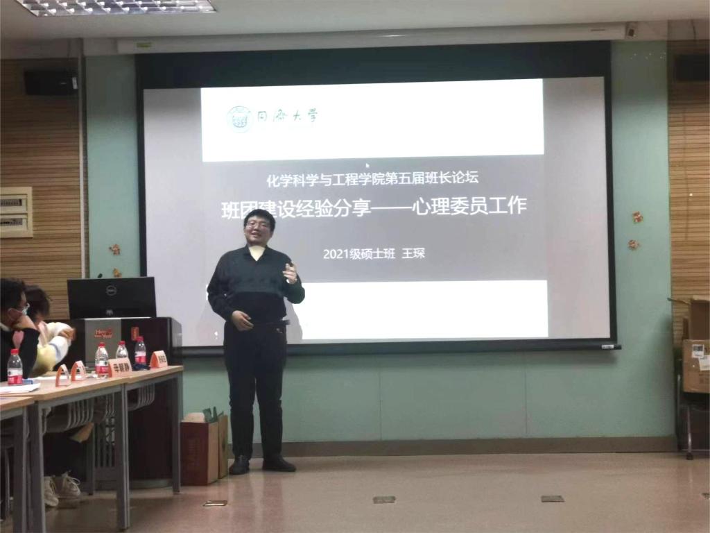 2021级硕士研究生班级心理委员王琛从“人”“事”两方面讲述,对“人”这块工作强调结实的人际关系网络、充实的心理专业知识、坚实的以人为本思想;对“事”强调附加型心理健康活动和主动型心理健康活动。大学生创新创业俱乐部yl9193永利集团分创主席宫正合介绍了科创项目孵化的过程以及项目成果展示的各类平台。