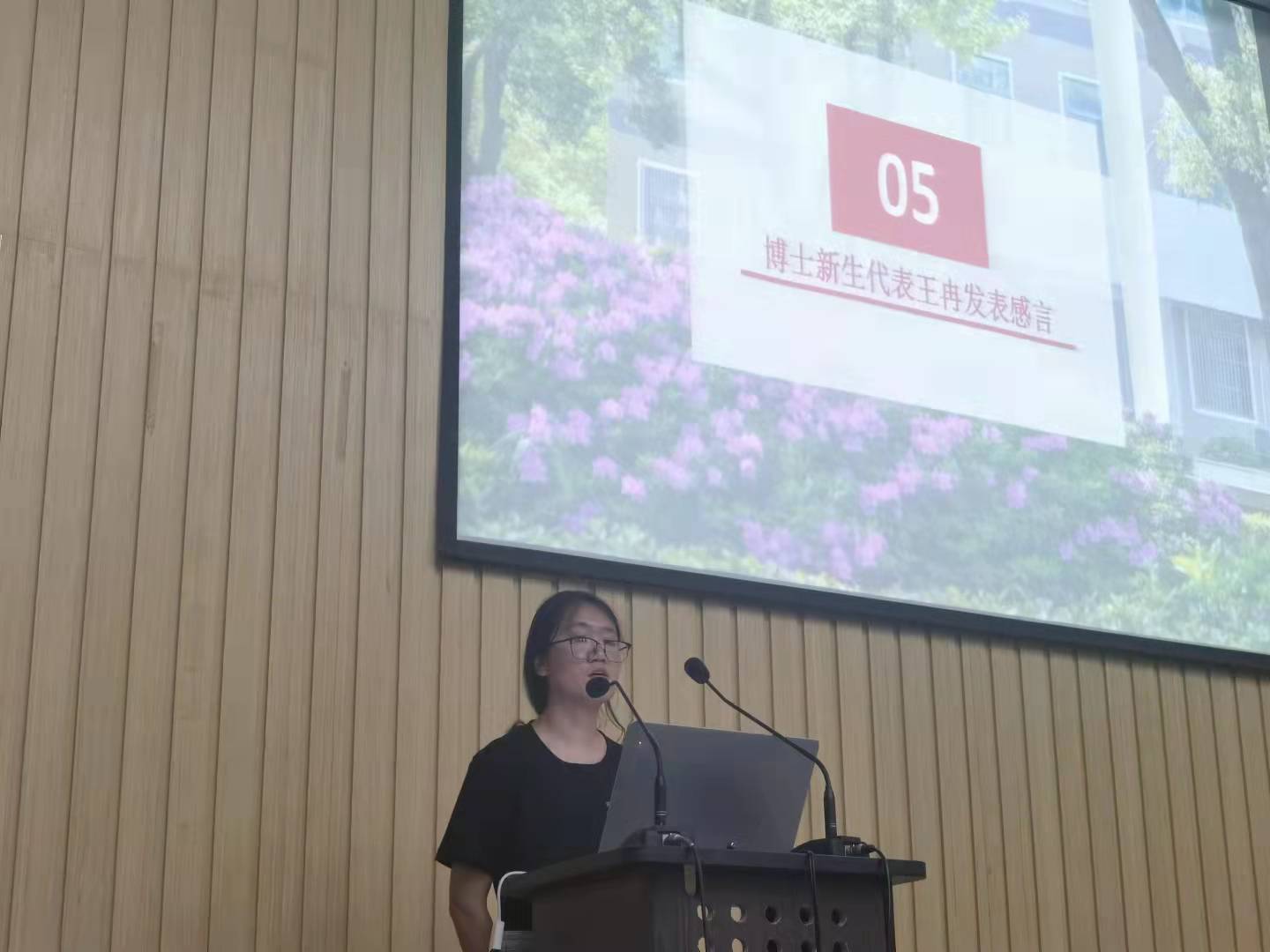 2021级博士研究生班主任刘国锋教授作为教师代表对同学们的到来表示热烈的欢迎,从坚定自信,保持自律,追求自立:善于思考、勤于动手三个方面对同学们的研究生生活给出了建议,表达了殷切的期许。“只要大家能够坚持做到思想上自信、生活中自律、科研中追求自立,相信在科研之路上一定会:有志者事竟成。”