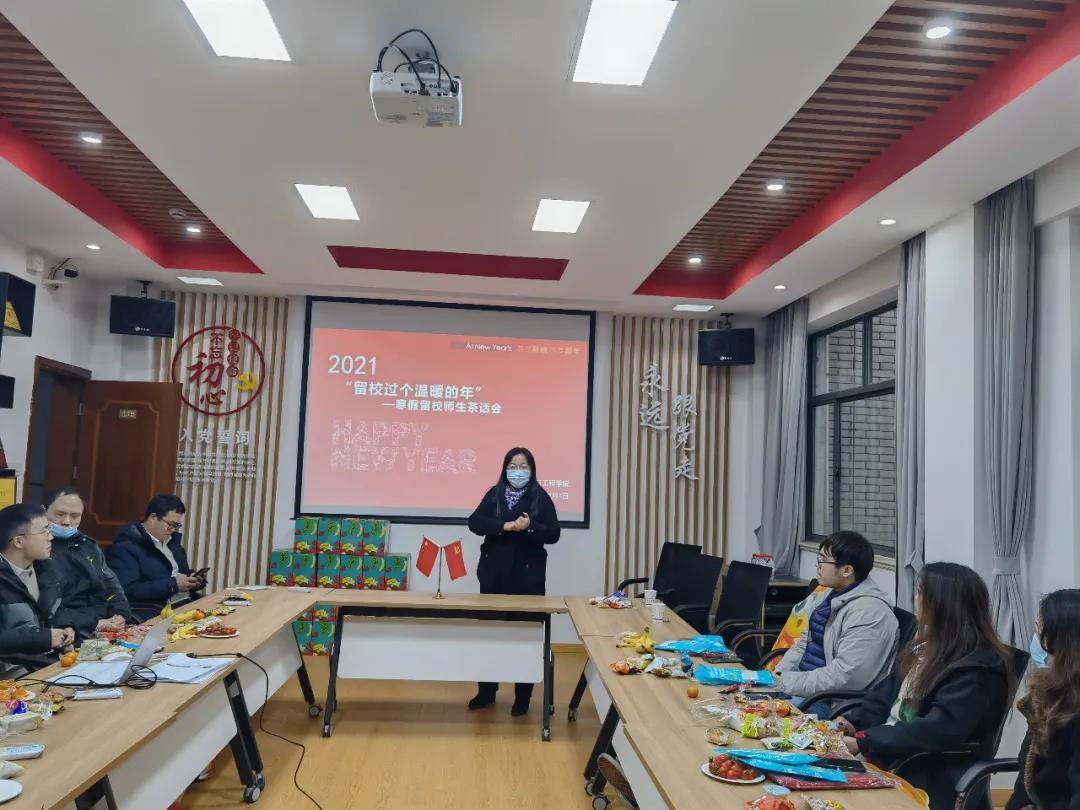 银鼠笑辞旧年去,金牛乐迎新春来。2月1日下午,“留校过个温暖的年”寒假留校师生新春座谈会在化学馆120和239同步举行。学院院长张弛、党委书记杨晓杰、副书记兼纪委书记王启刚、副院长刘明贤以及学工办老师与学院留校本科生、研究生、少数民族学生近50人欢聚一堂,共贺新春。学院党委副书记母朝静主持座谈会并介绍留校学生安全防疫工作要求。