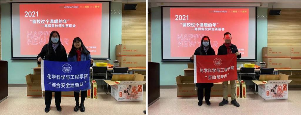 据悉,本科生寒假学业“互助帮帮团”主要针对留校学业有困难的同学,以学院传统“化梦为行”线上学业辅导活动为抓手,通过在线答疑、一对一辅导等,帮助同学在假期巩固专业知识。研究生“综合安全巡查队”围绕学院实验室安全工作,综合巡查实验场所和办公室,及时指出,要求改正。两支队伍将以志愿服务为重要载体,努力让每位留校学生都有发挥作用的领域,都能有所收获。最后,学院领导向留校学生发放了新年大礼包。