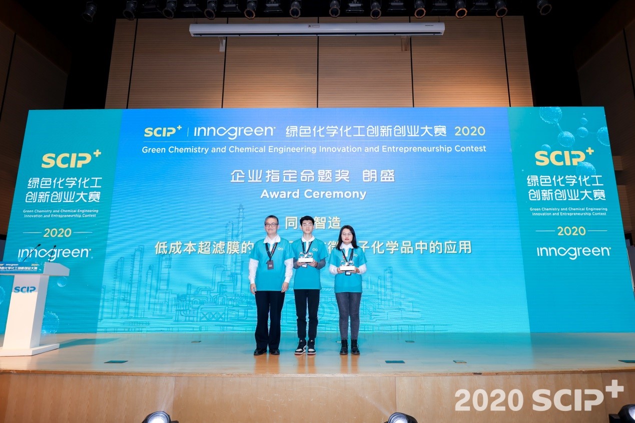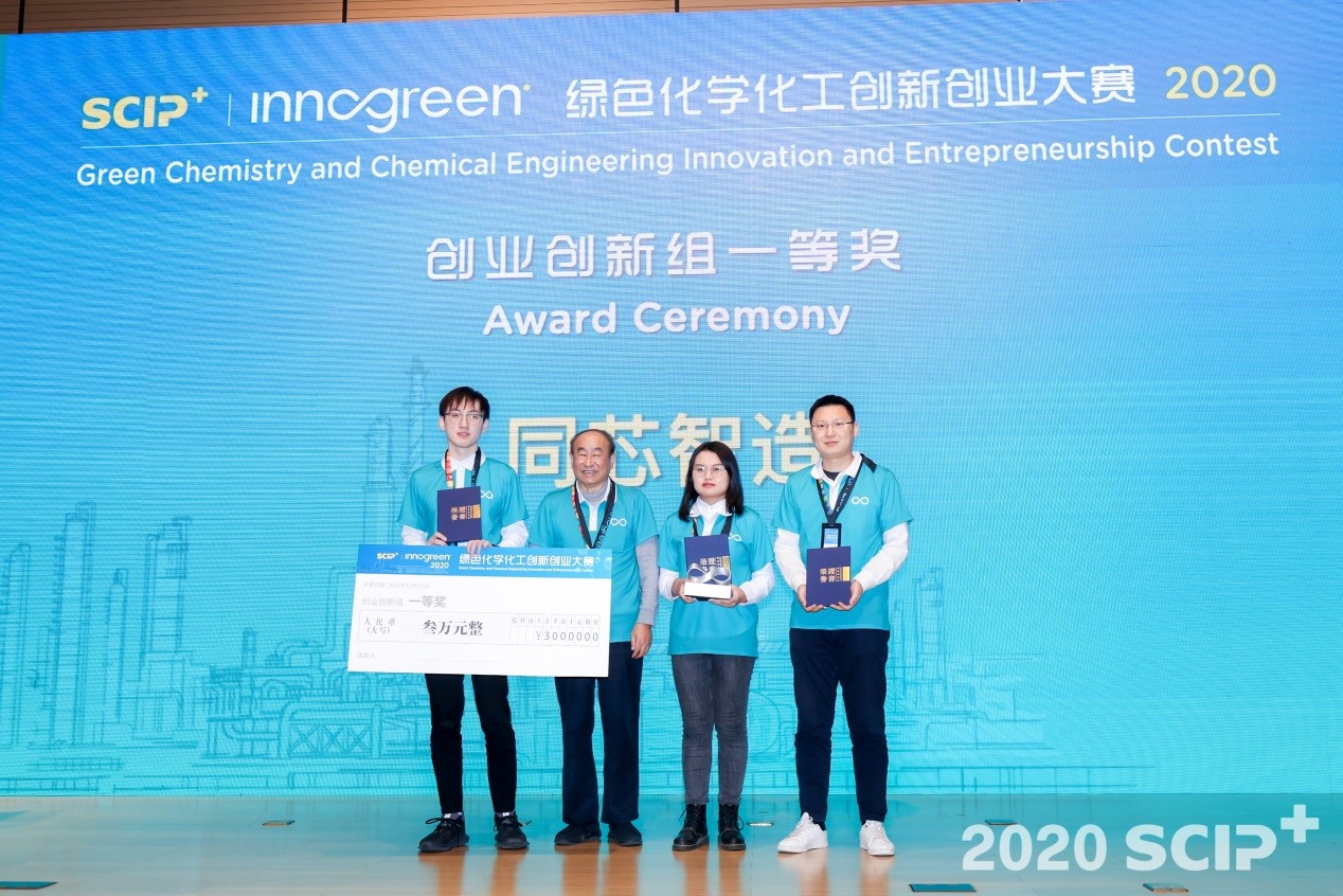 12月12日,由中国石油和化学工业联合会、中国化工学会、上海化学工业区和华东理工大学联合主办的2020“SCIP+”绿色化学化工创新创业大赛决赛在上海化学工业园区落下帷幕。我院研究生陈涛、周玙、陈连杰、姚孟婷和博士后王敬强等组成的“同芯智造”团队,在路庆华教授和郑凤老师的悉心指导下,从全国247支团队(创新创业类)中脱颖而出,历经初选初赛、复赛评审、线上半决赛以及激烈的“争金”角逐,最终凭借“半导体封装用PBO光刻胶的国产化开发及绿色产业化”项目成功问鼎大赛创业创新组!