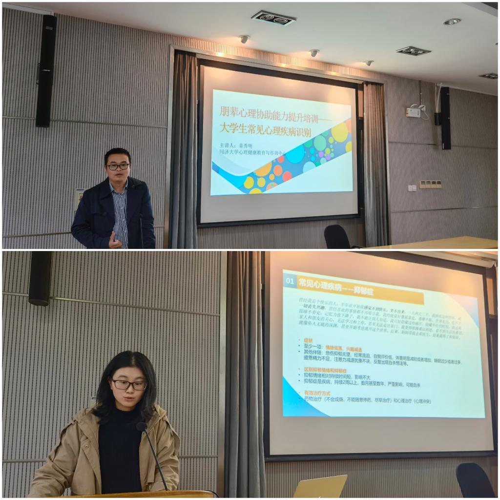 为进一步提升朋辈的心理健康知识水平和工作技能,充分发挥朋辈在心理辅导中的重要作用,11月24日下午yl9193永利集团在化学馆241召开班团干部大会,邀请学校心理咨询中心专业老师章秀明做“朋辈心理协助能力提升”培训,学院学工办主任丁奇老师主持培训会,学院党委副书记母朝静老师做会前讲话,学院各班班长、团支书及心理委员等参会。