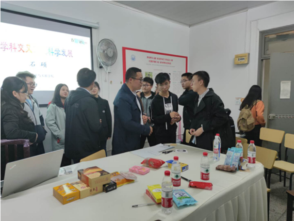 听完石教授关于学科交叉的精彩讲述,同学们纷纷开始与石老师、母老师交流成长中的困惑、专业上的疑问、未来发展方向的咨询等。有不少大一的同学都表示刚进入大学有点不适应,身边的同学都很优秀,有一点自卑的情绪。石教授和母老师贴心地进行开导,讲述了以往学生的实际经历,说:“同学们来自全国各地,基础一定会有所差别,但只要从现在开始努力,给自己制定一个目标,相信同学们会弥补之前的差距,甚至在各自专业里出类拔萃。”也有不少同学表示想参与到科研工作中,想尽早地进入实验室。石教授告诉同学们在大一、大二还是要先把基础打好,并且留些时间给自己决定兴趣方向。