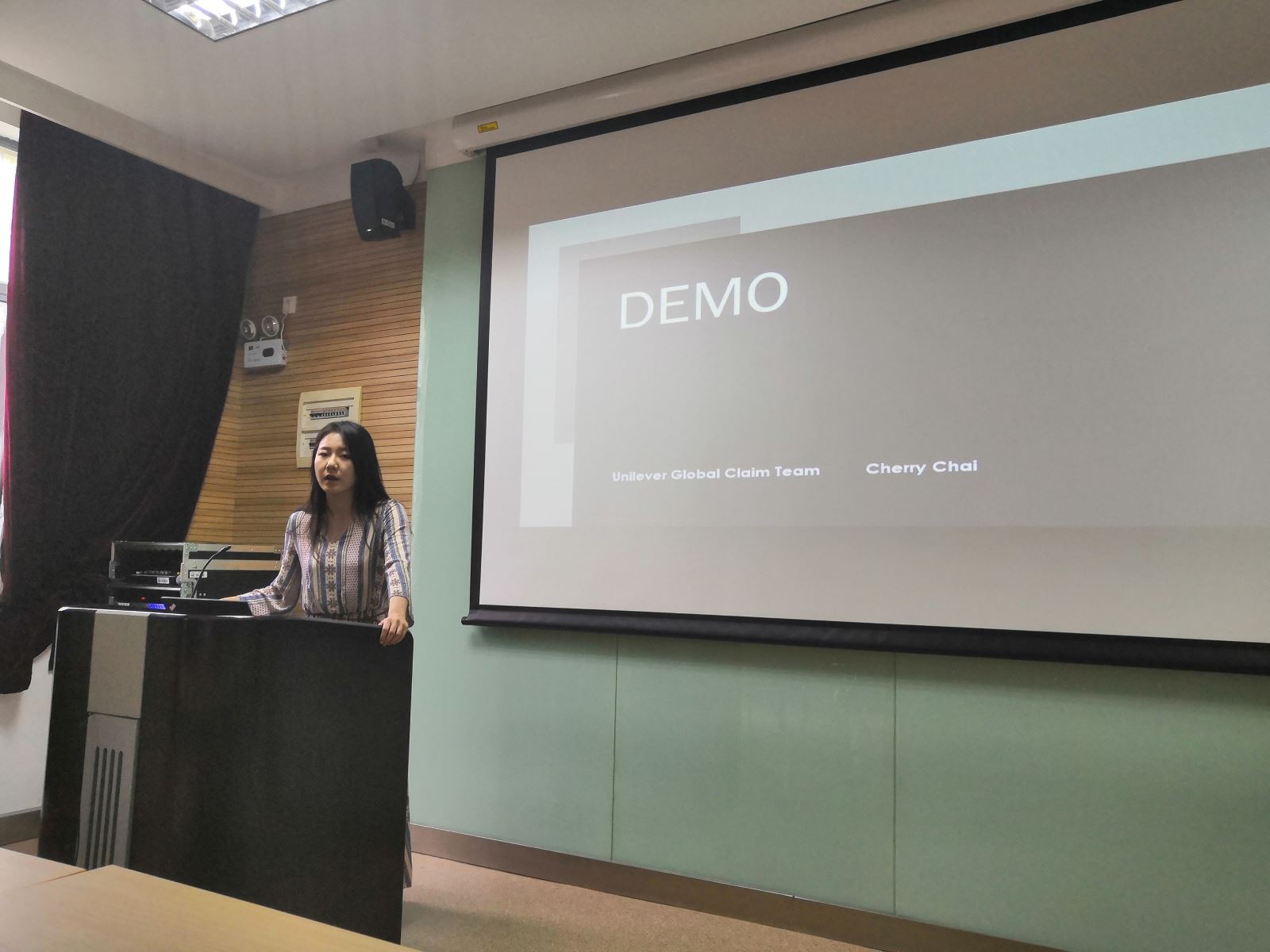 本次宣讲会的主题是介绍“Unilever DEMO Brain Storming”大赛的相关情况。首先,Cherry解释了“DEMO”的定义,并给在场的同学们展示了数个成型的DEMO;然后,介绍了此次大赛中规定的参赛作品的格式、提交方式、比赛的奖励等相关内容。最后,在交流环节中,Cherry就大赛的具体内容、联合利华的招聘流程等同学们关心的问题,与大家进行了广泛的交流,对同学们的疑问也一一进行了解答。