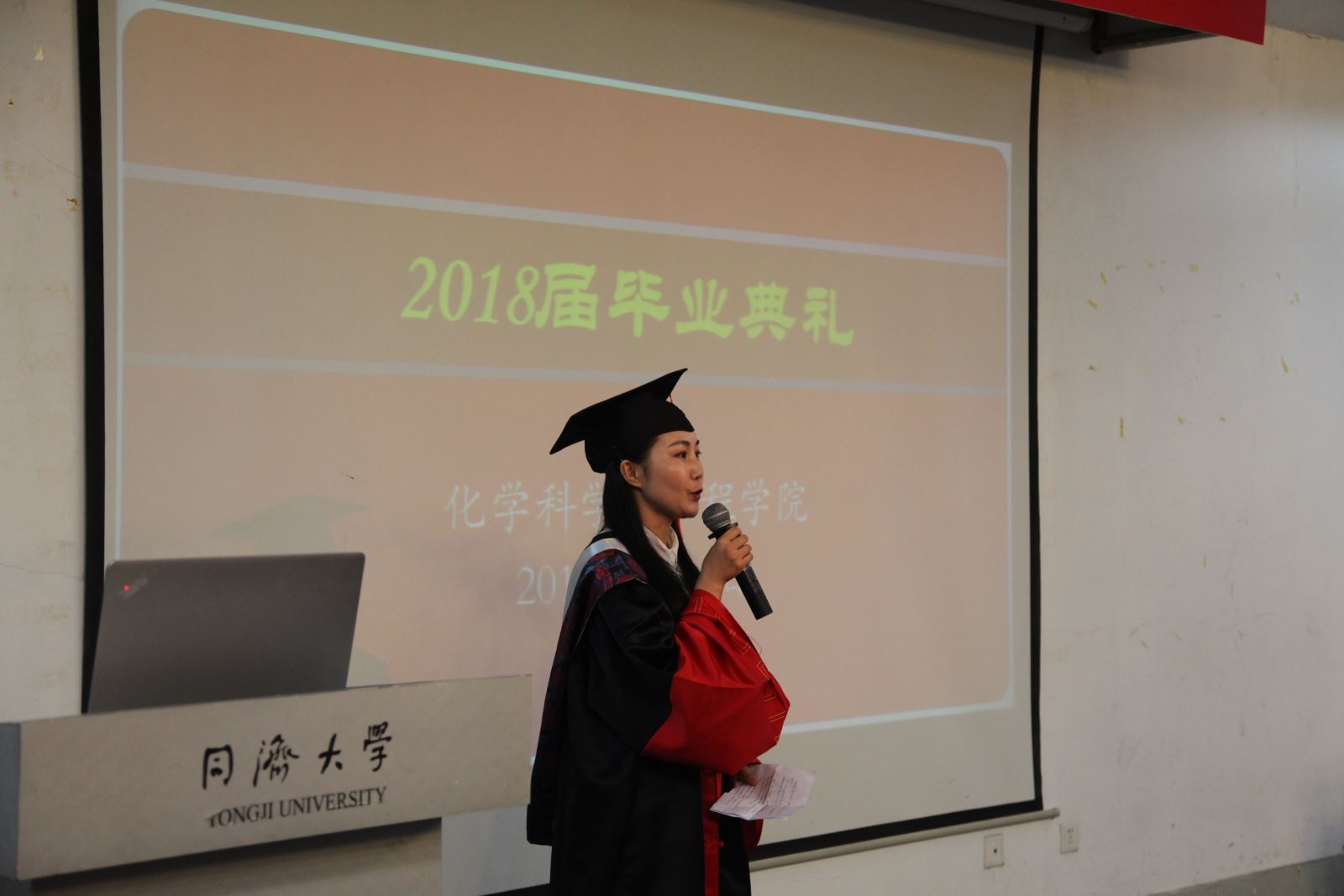 柯芝敏作为班主任代表祝贺全体毕业生毕业快乐。她深情回忆了与同学们相处的点点滴滴,表示对同学们深深的不舍与满满的祝福。她真诚地寄语毕业生,希望同学们能够从同济做到三个“带走”: 一是牢记同济仰望星空的姿势,将同济化学印刻在心里带走,传承同济精神与文化、永远秉持初心;二是珍惜同窗之情,将这份珍贵的情谊怀揣与心中带走;三是将老师传授的知识带走,靠实干、担当,用知识、智慧、热情书写人生。