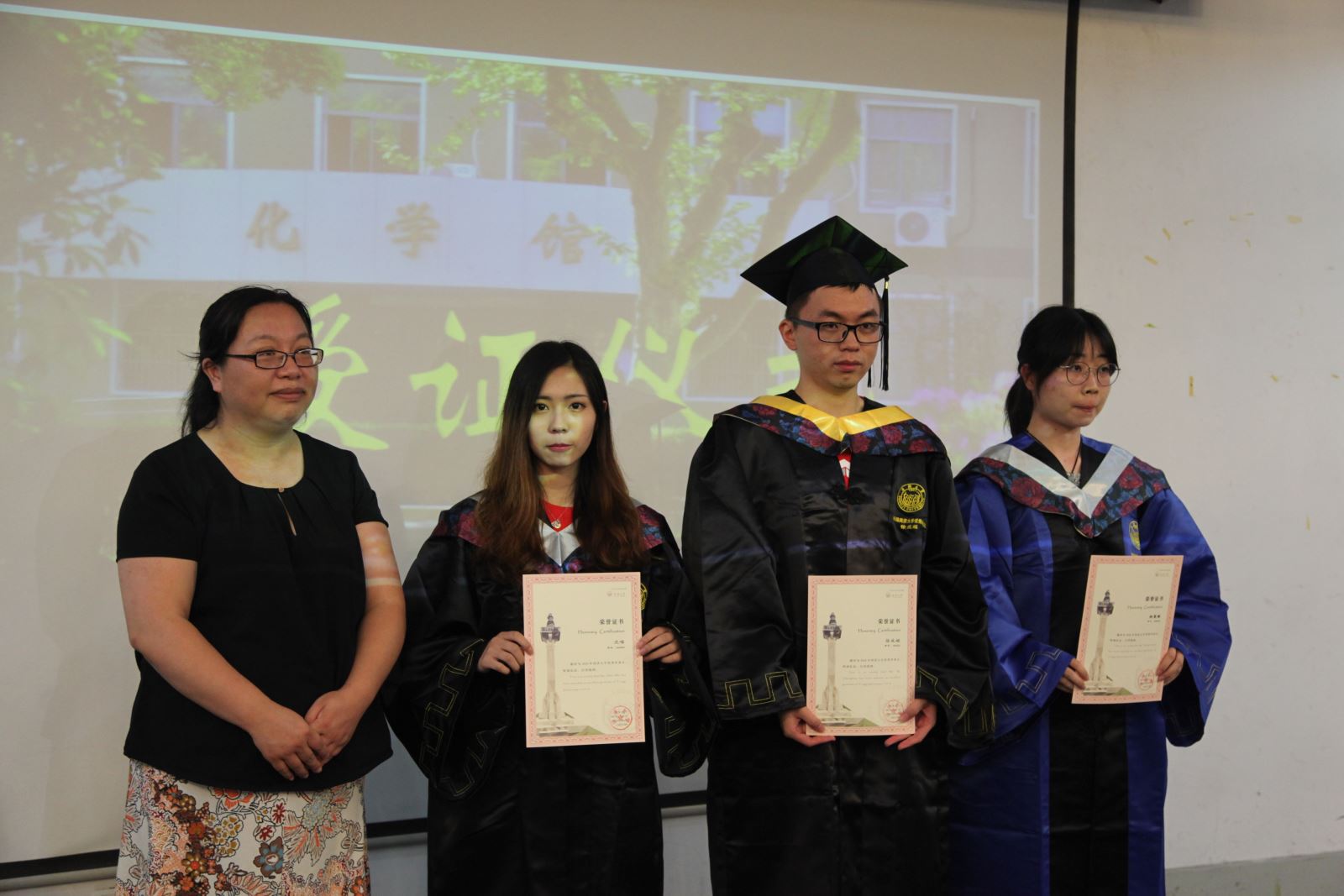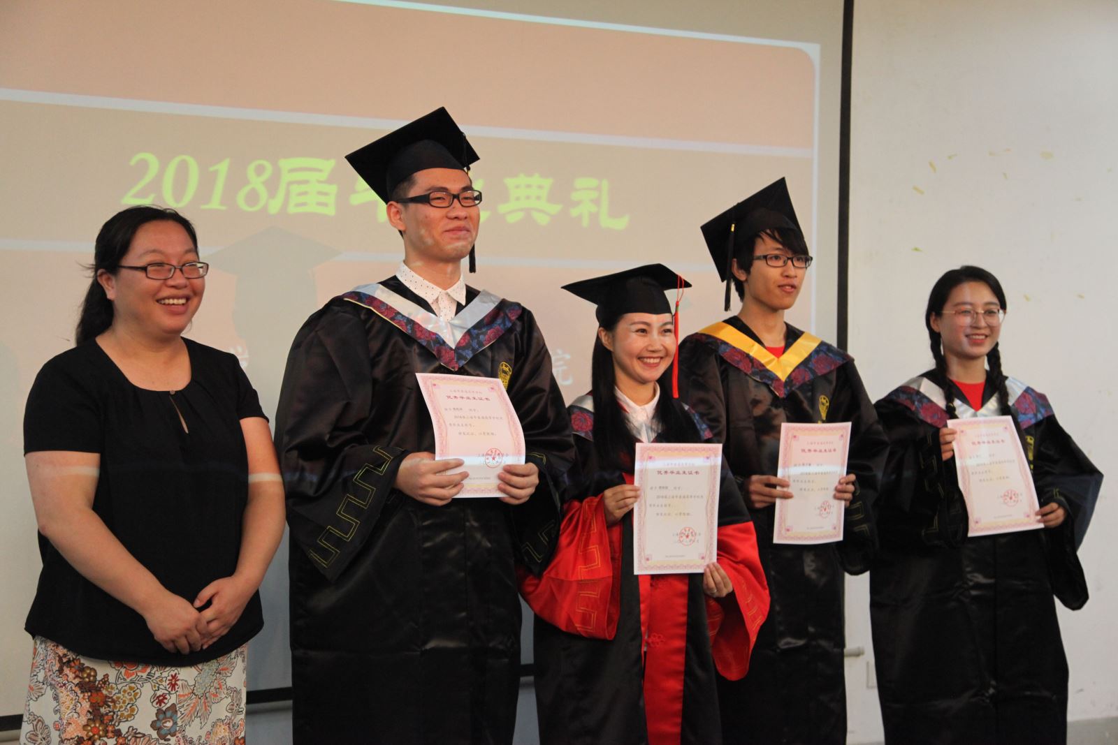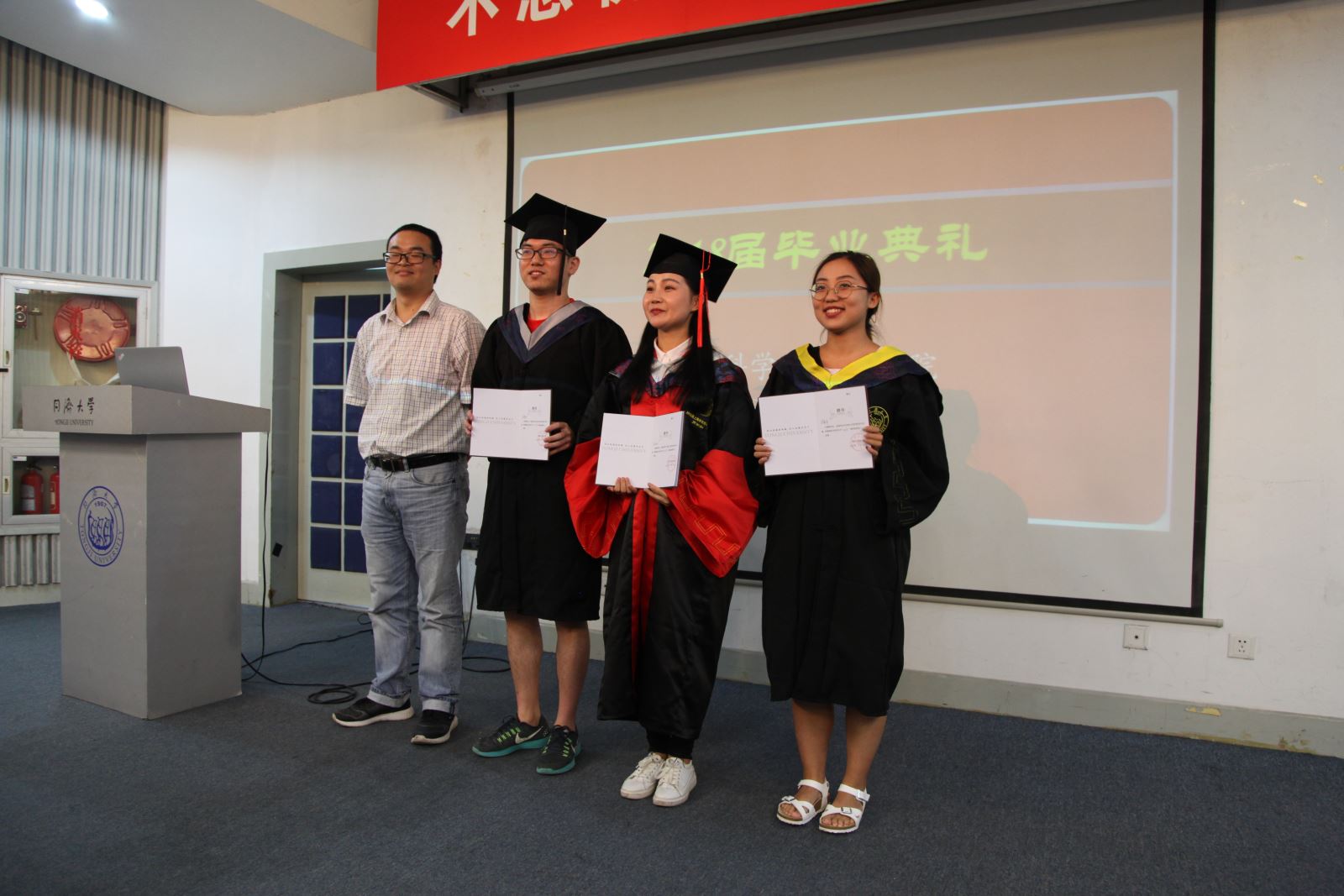 党委副书记母朝静宣读2018届全体毕业生名单并举行授证仪式。全体2017届博士、硕士、本科毕业生一一登台,从院长张弛、党委副书记(主持工作)杨晓杰和田志新、陈作锋、杨金虎等教师代表手中接过毕业证书,拨穗并合影留念。