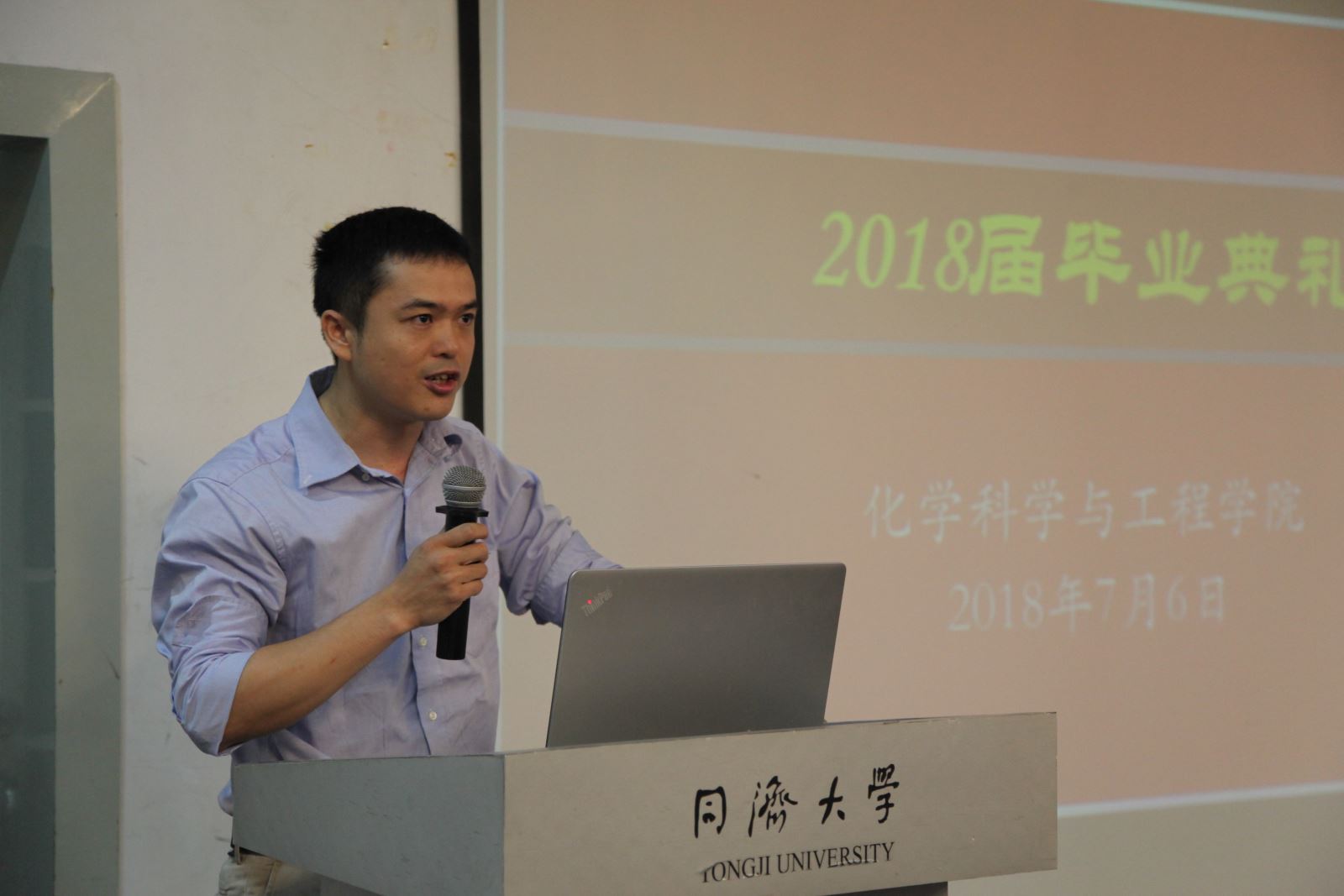 陈作锋作为导师代表祝贺2018届全体毕业生顺利毕业,同时对同学们未来的发展充满信心,他寄语毕业生要在今后的人生道路上做到三个“坚持”: 坚持理想和目标、坚持学习、坚持锻炼,要传承百年同济的精神,准备好肩负起更大的社会责任,肩负时代使命。
