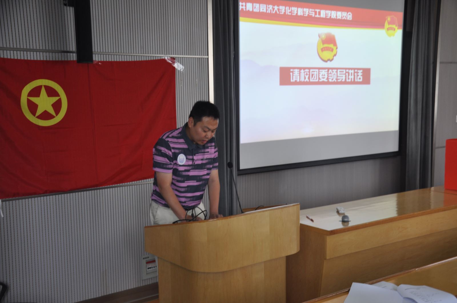 校团委副书记高玉磊老师为大会致辞。首先高玉磊老师对大会的顺利召开表示祝贺,肯定了我院团委过去几年来的工作成效,并向长久以来支持我校共青团工作的学院党委和全体团员青年们表示感谢。同时他表示,在新时期、新形势下,共青团组织要努力探索团建新途径,围绕“服务青年成才”的工作原则,坚持“以育人为中心,以青年思想教育为己任,以提高团员青年素质为重点”的工作思路,真抓实干、发挥优势、突出学科特色,不断规范工作程序、丰富工作内容,创新工作载体,把共青团组织建设成为一支朝气蓬勃、健康向上、团结拼搏的先进青年队伍。同时,他希望希望广大团员青年勇做““五好”、“五守”同济人才”的实践者,把握时代进步和社会发展的脉搏,爱岗敬业、刻苦学习、勤奋工作,为振兴中华和同济发展做贡献。