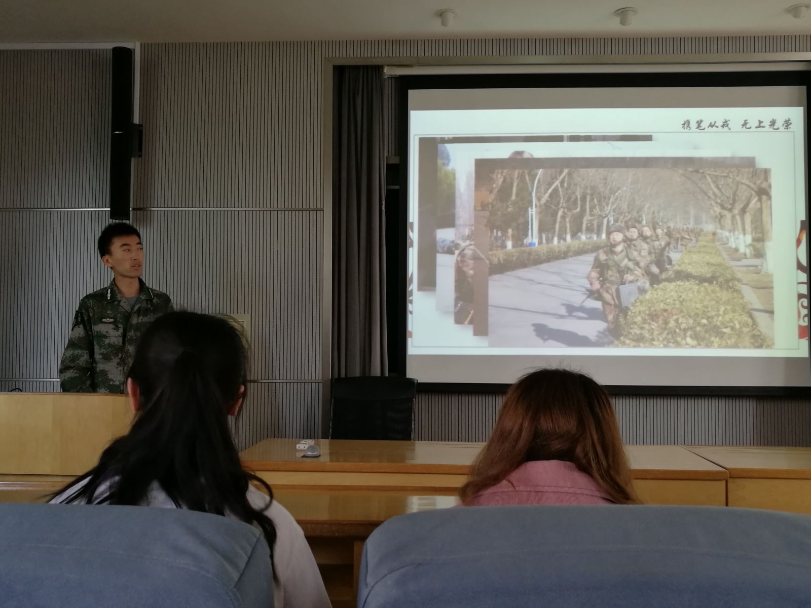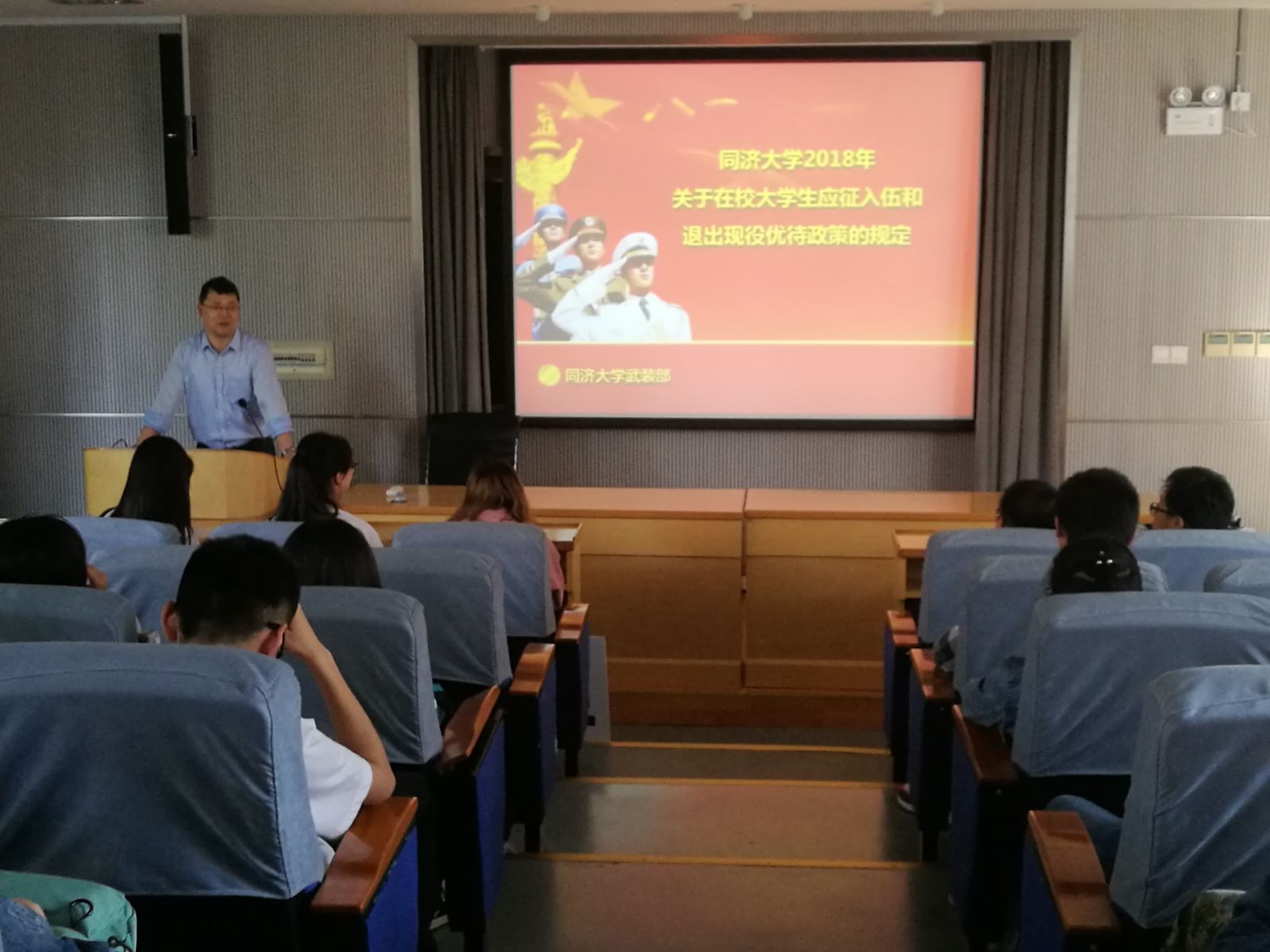 5月8日下午,学院2018年征兵动员会在化学馆举行,武装部军事教研室主任袁仕品老师应邀出席,两位退伍复员大学生张洪源、高冲,2017级本科生和其他年级部分学生参加了会议。